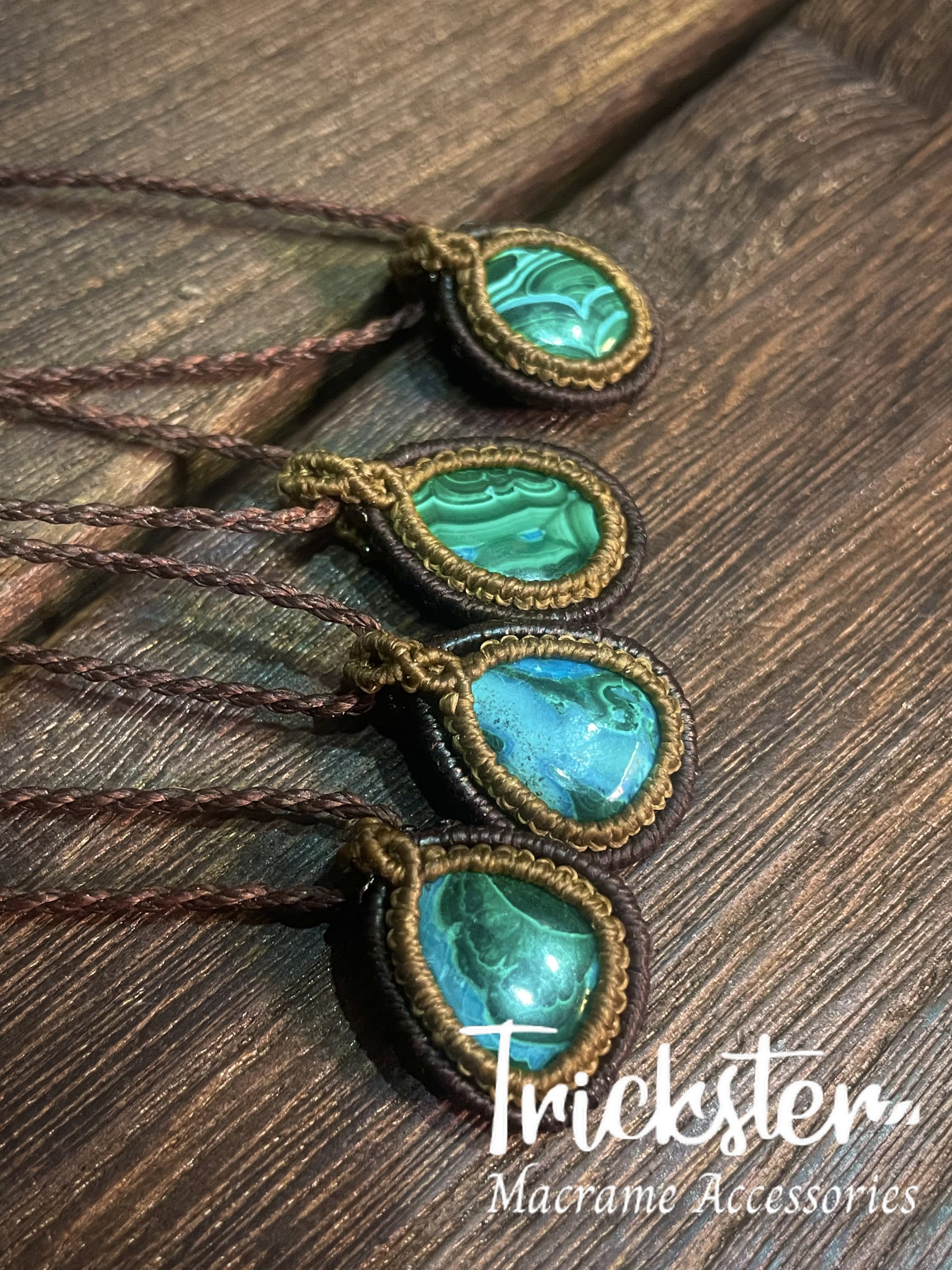 クリソコラマラカイトのマクラメペンダント4点を追加いたしました。