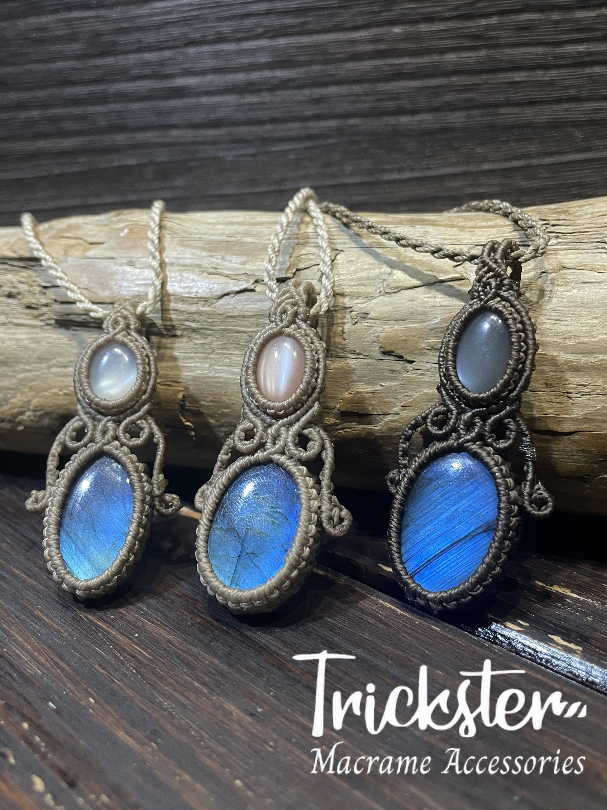 青色のラブラドライトとムーンストーンを組み合わせたペンダントは