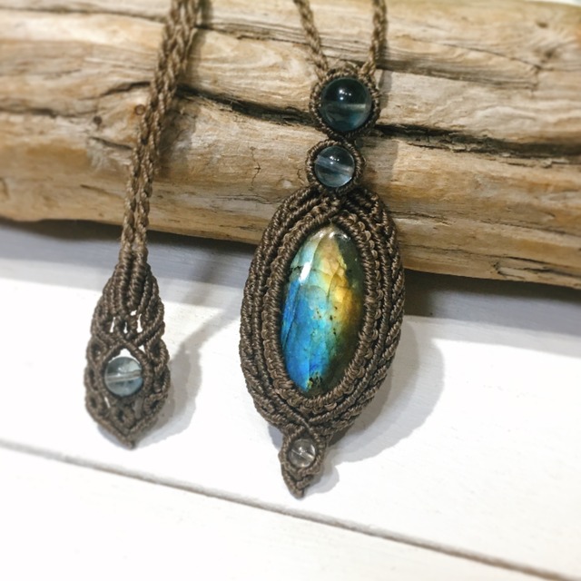 ラブラドライト ブルーフローライト マクラメペンダント T110