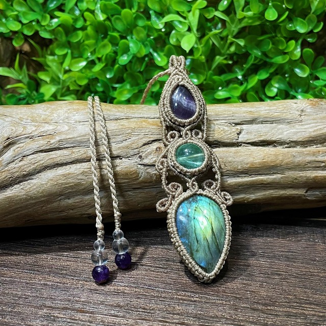 ラブラドライト アメジスト フローライト マクラメペンダント T243