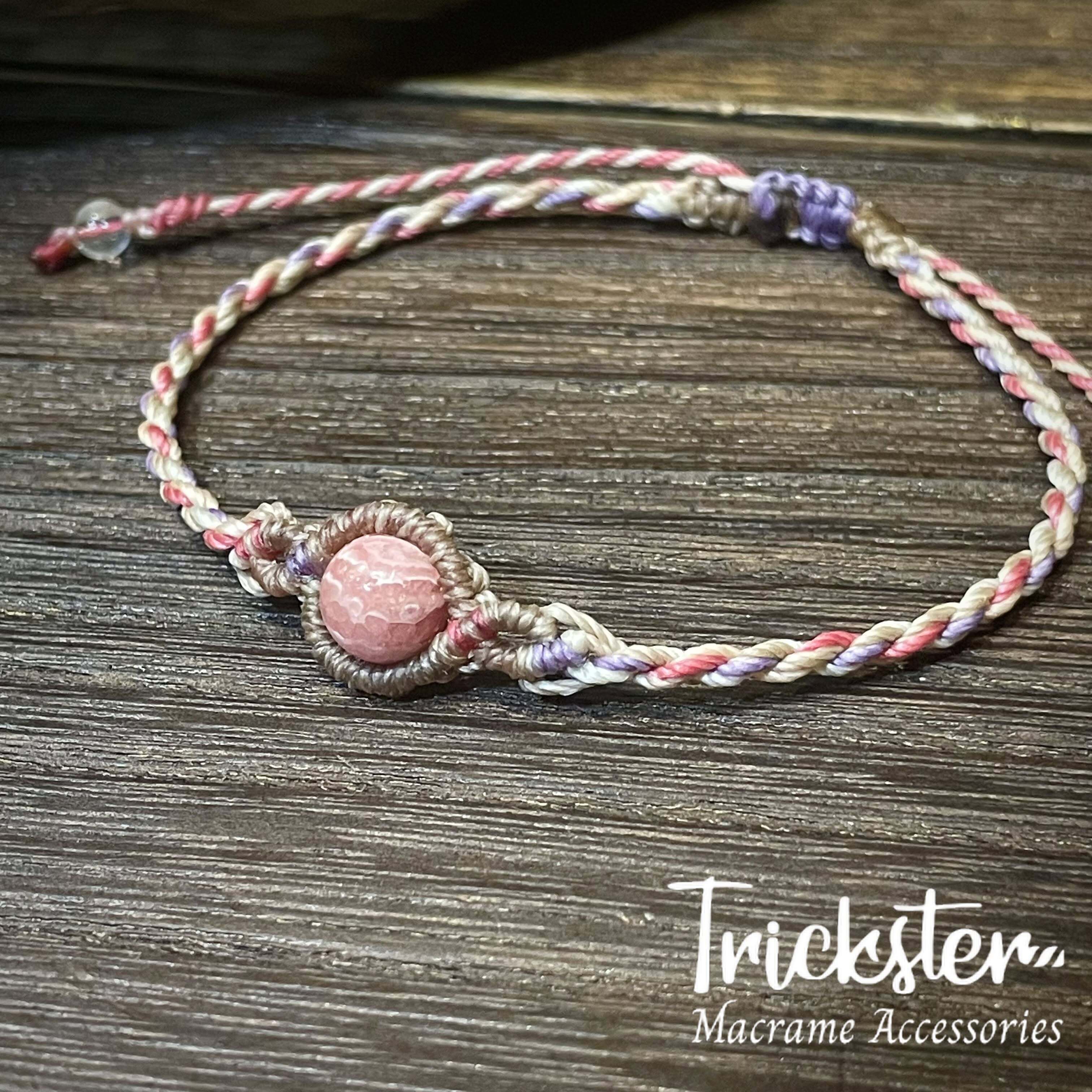 カラフルな紐とシンプルなデザインで仕立てた、軽やかなマクラメブレスレット。