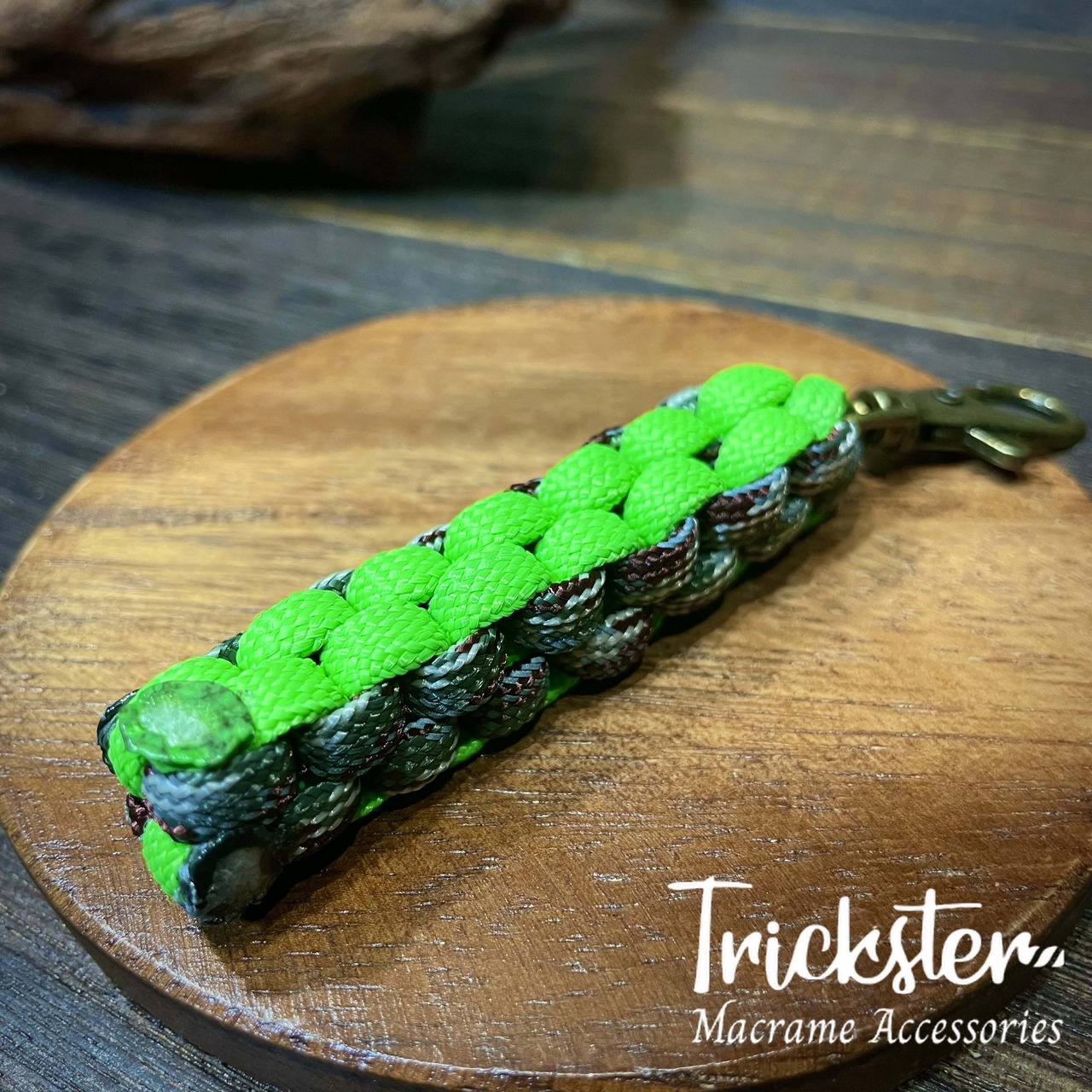 2色のパラコードを使った、四つ畳み編みのチャームです。