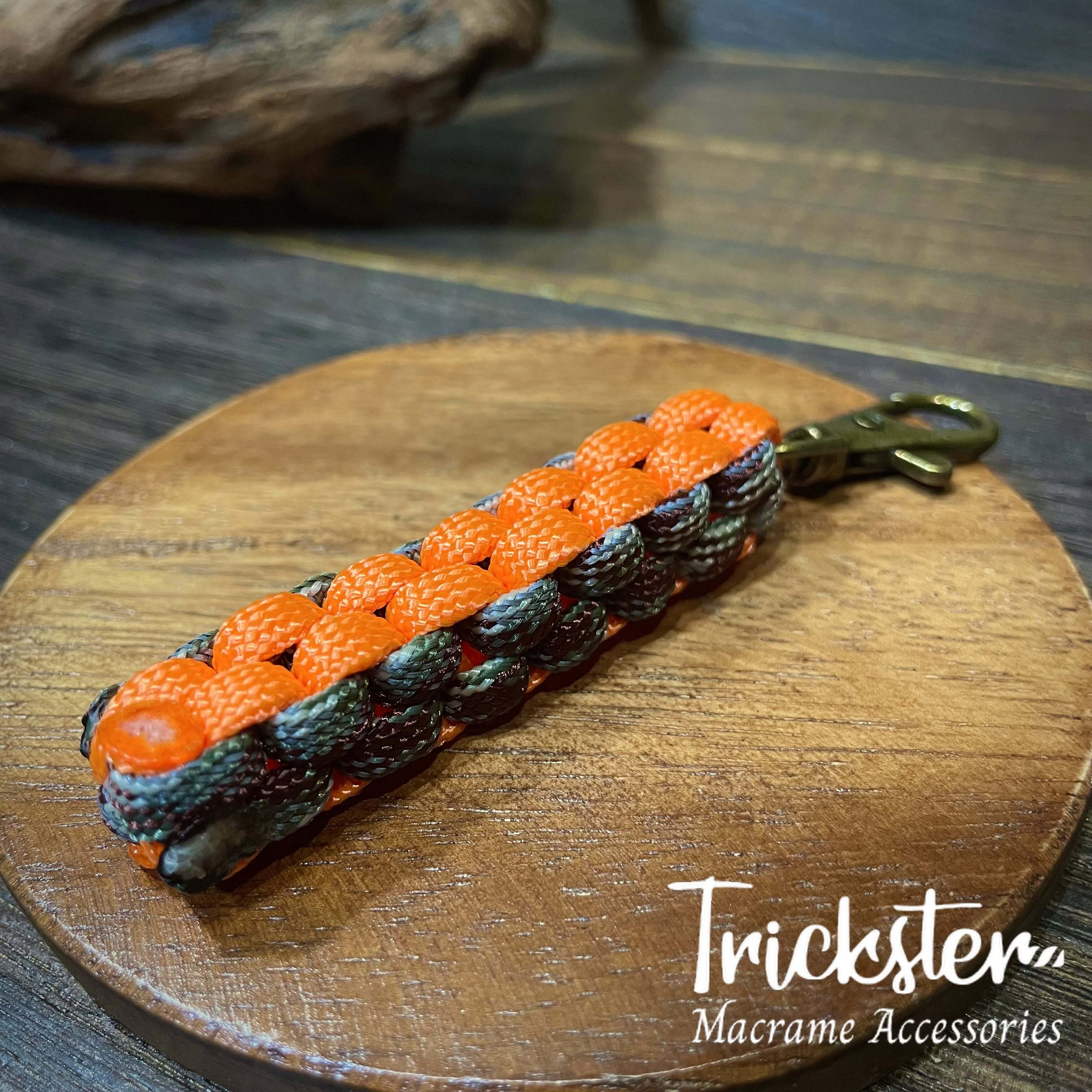 2色のパラコードを使った、四つ畳み編みのチャームです。