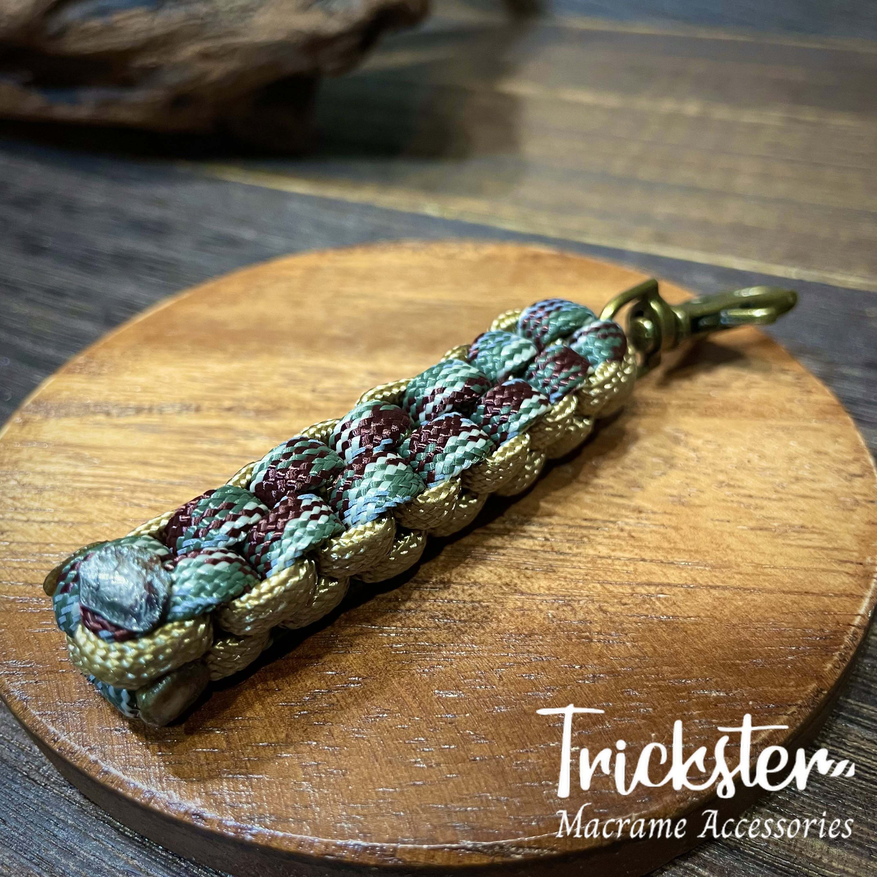 2色のパラコードを使った、四つ畳み編みのチャームです。