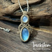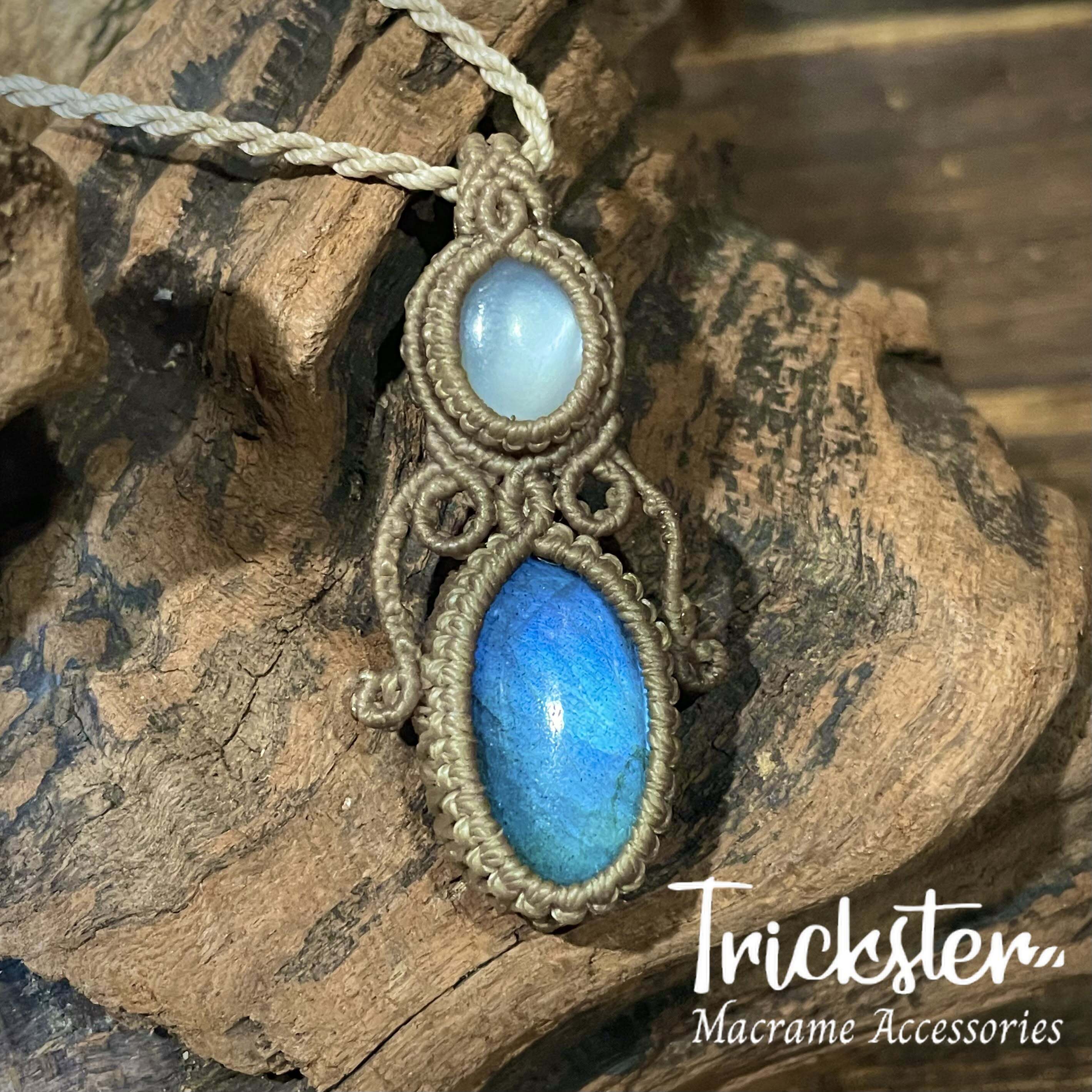 青色のラブラドライトとムーンストーンを組み合わせたペンダントは