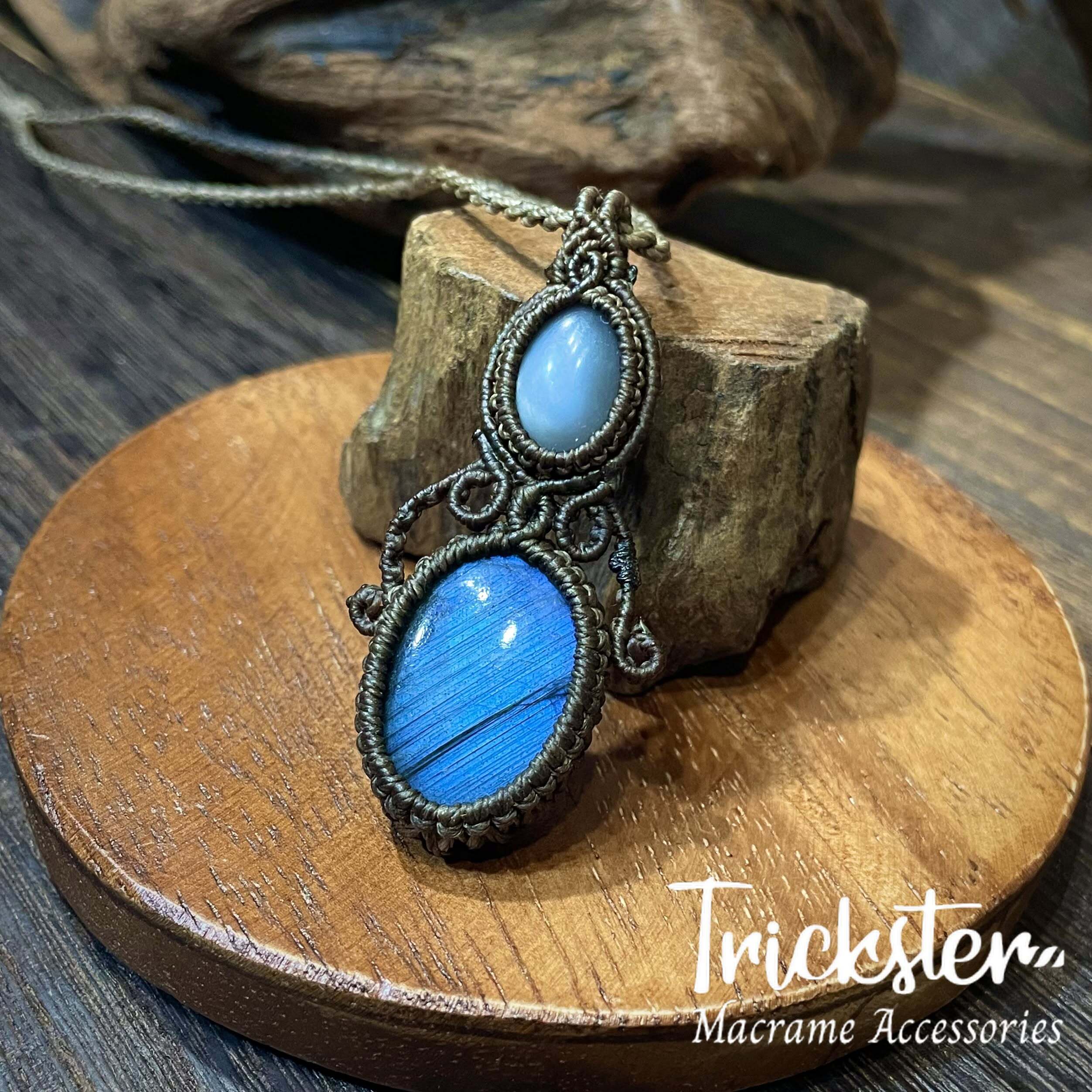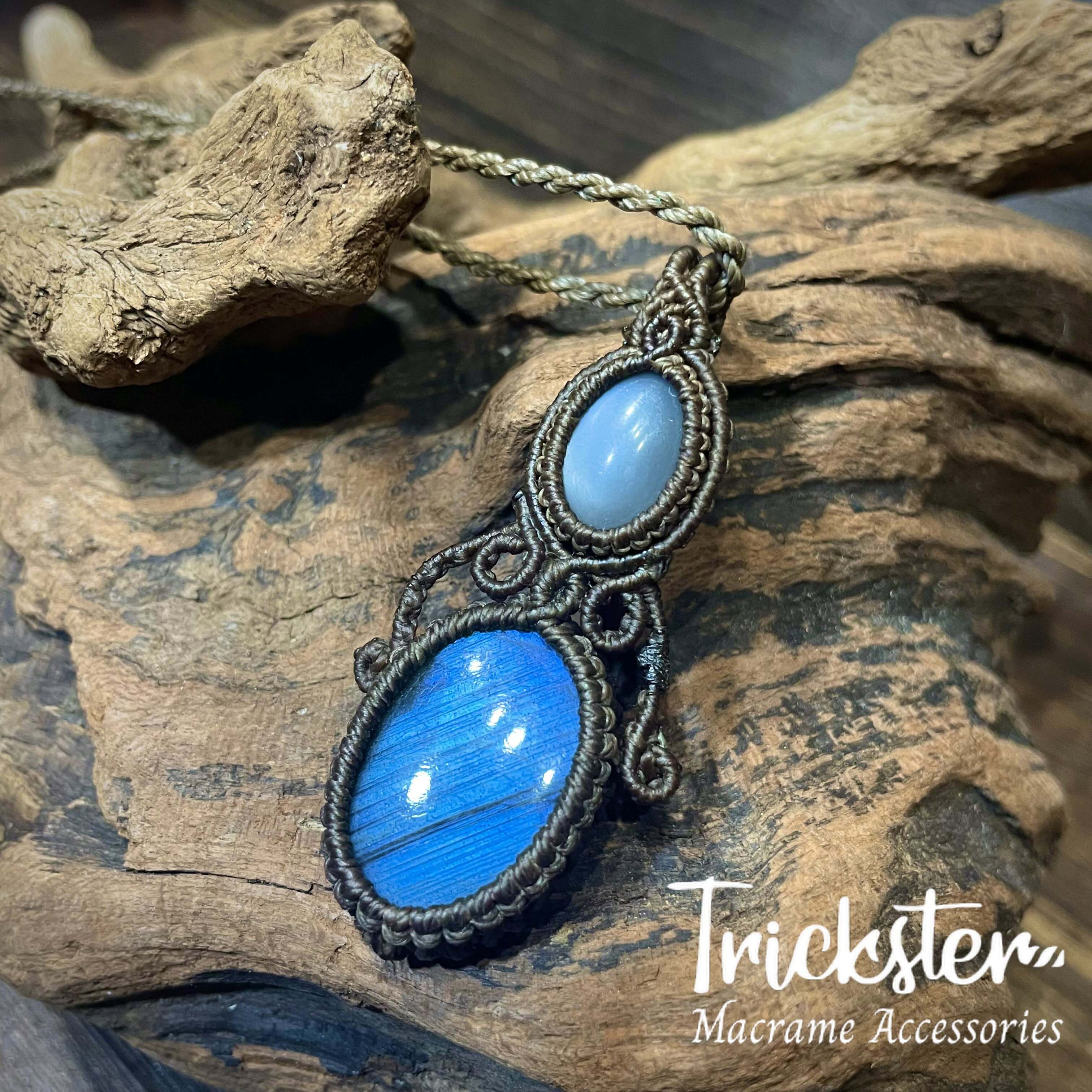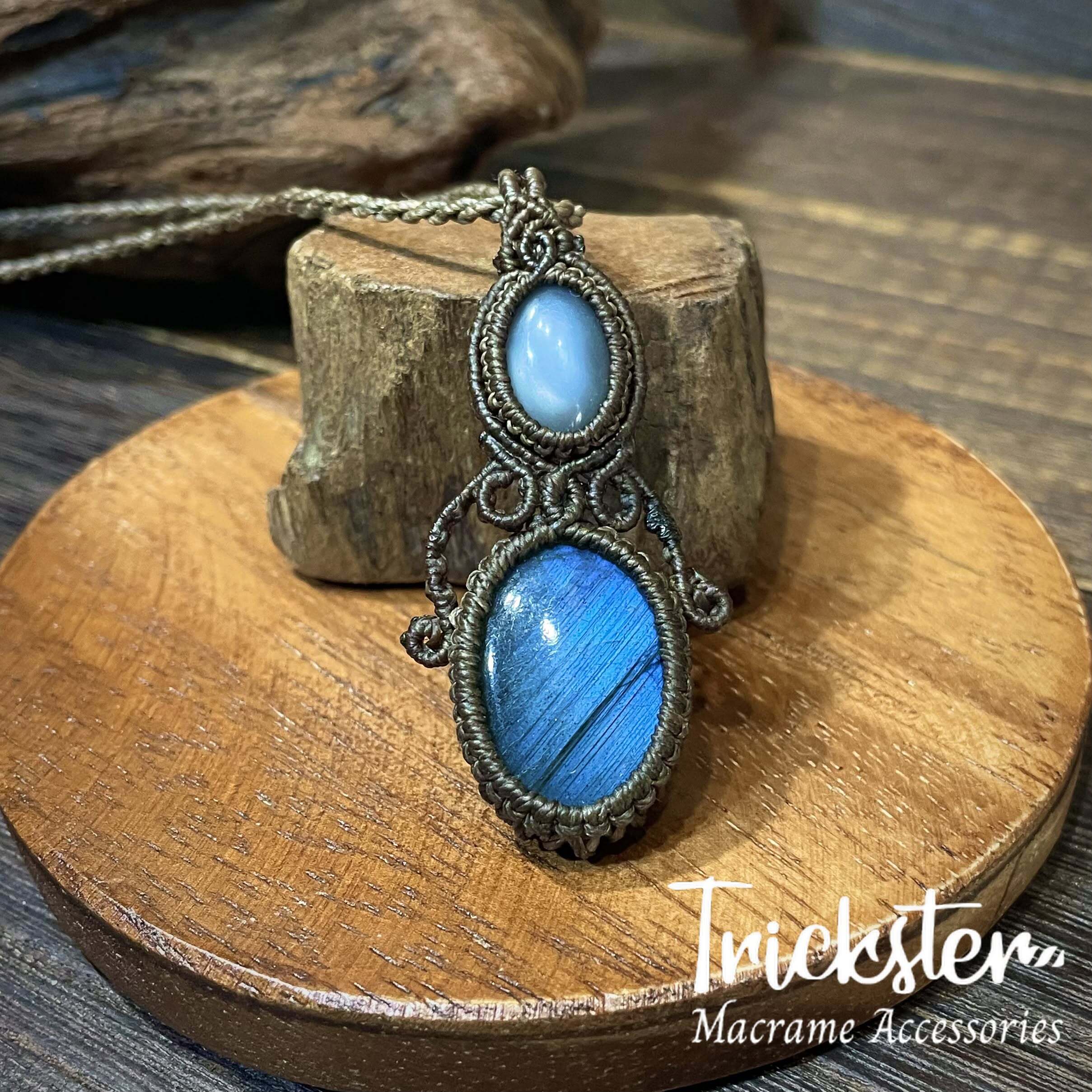 青色のラブラドライトとムーンストーンを組み合わせたペンダントは