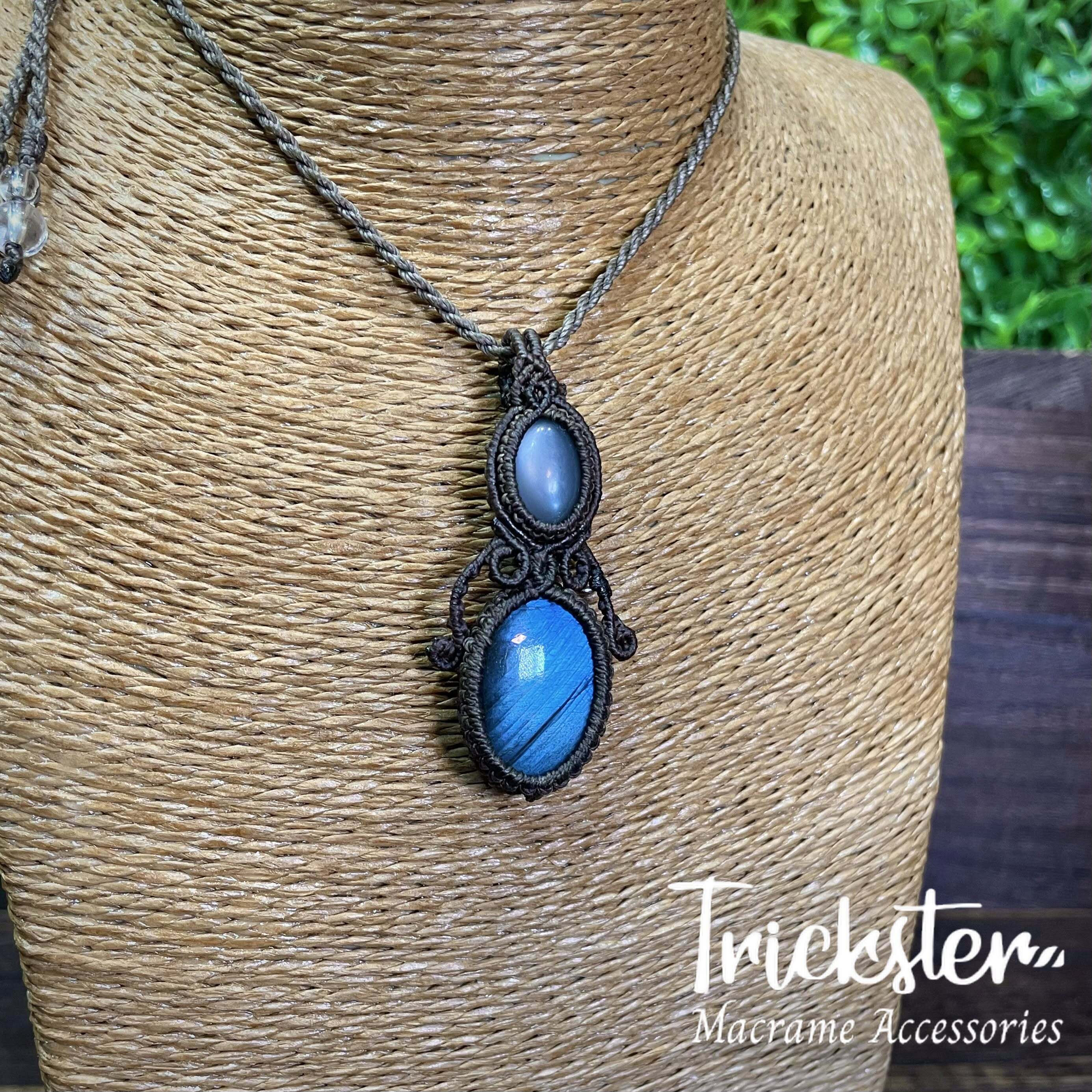 ラブラドライト ムーンストーン マクラメペンダント T262