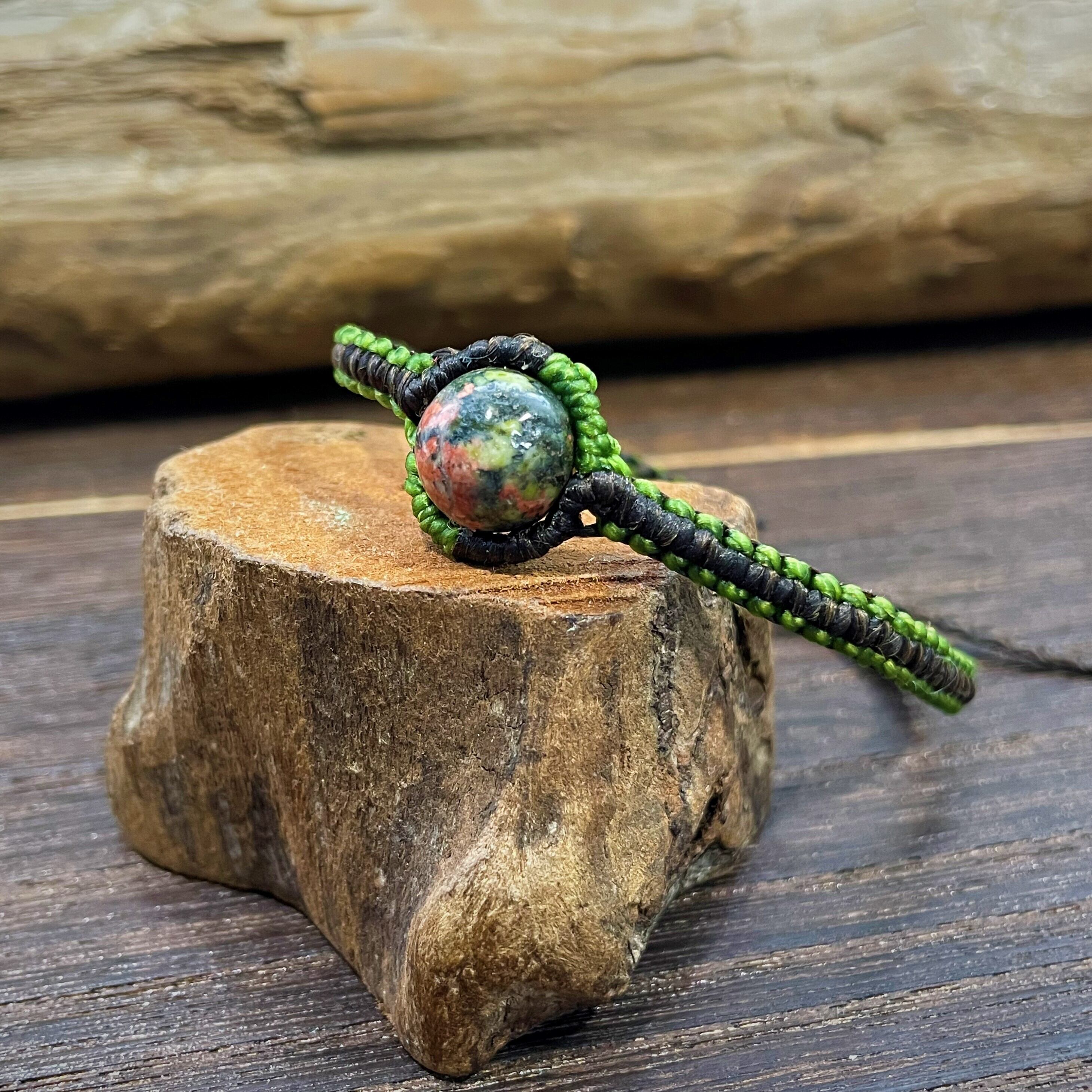 ユナカイトを使用したマクラメブレスレットです。
