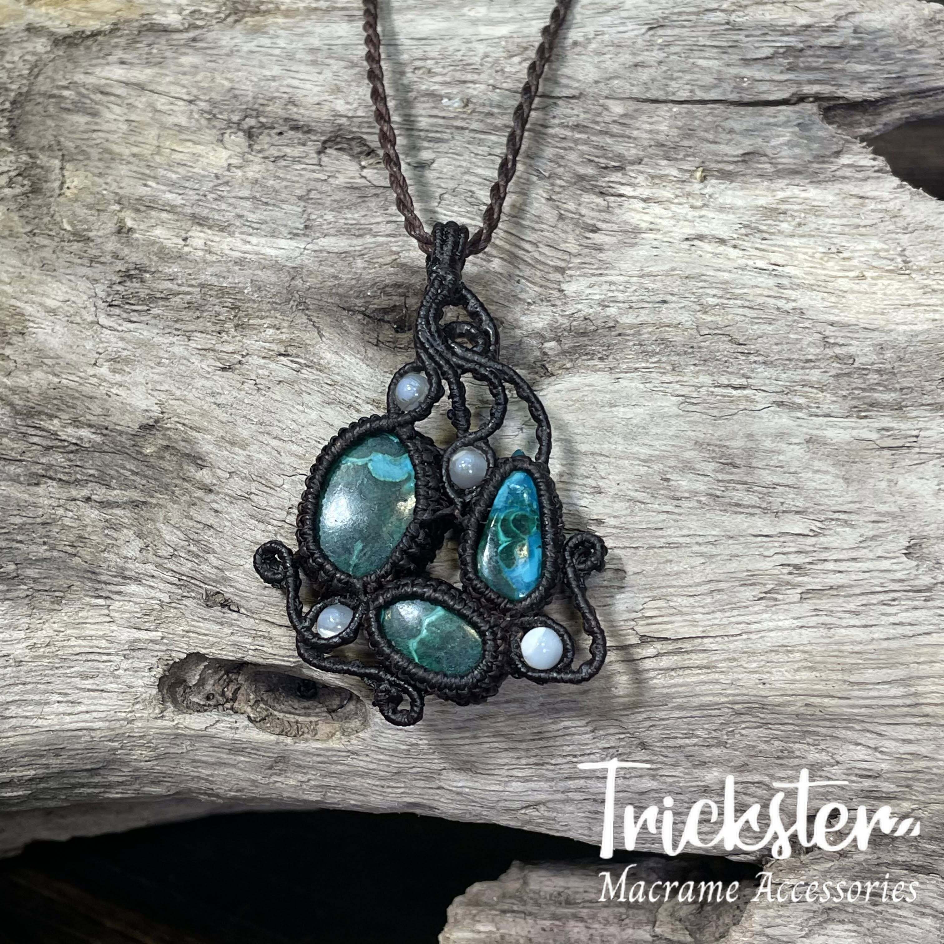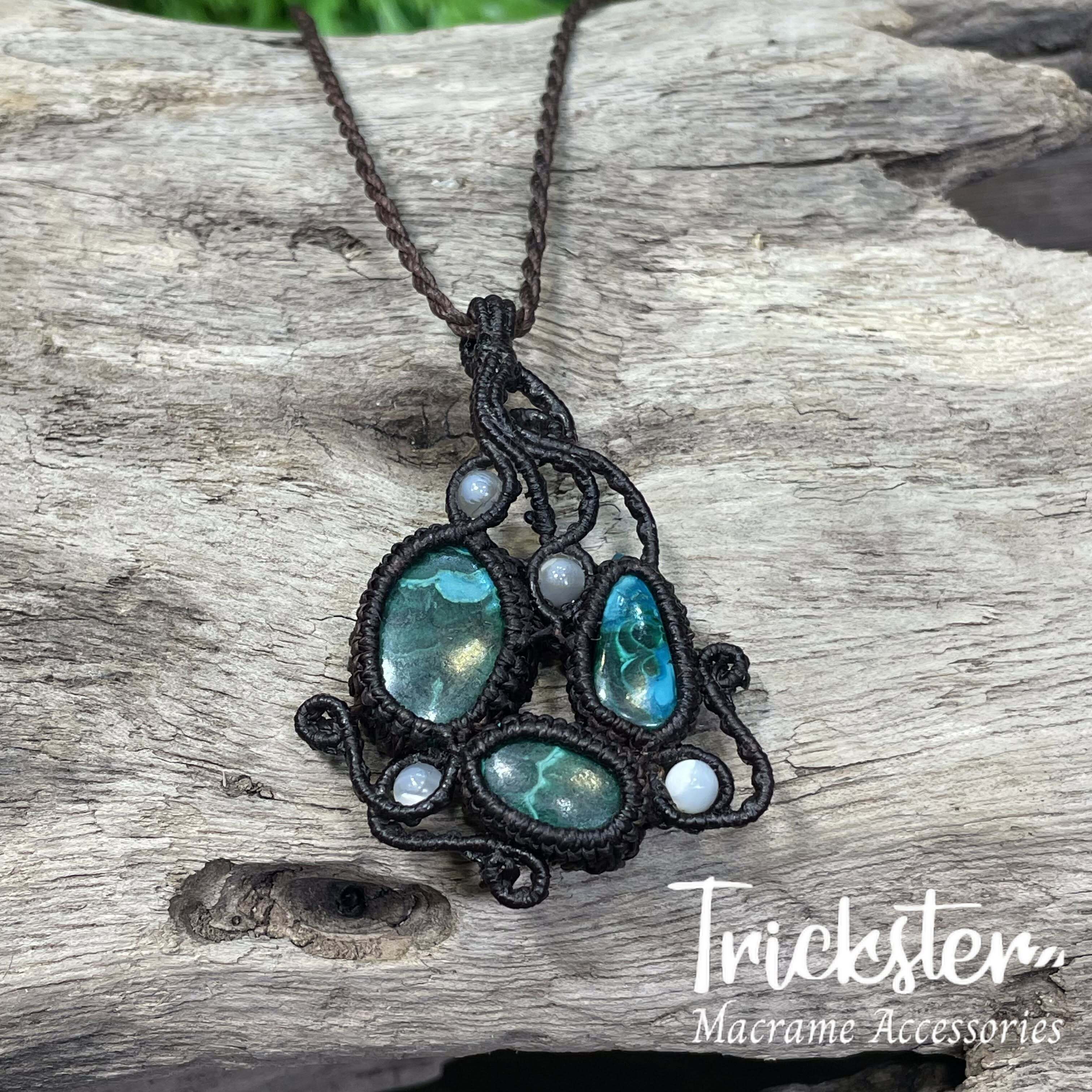 深みのあるグリーンからターコイズブルーへと移ろう天然石の表情を、
