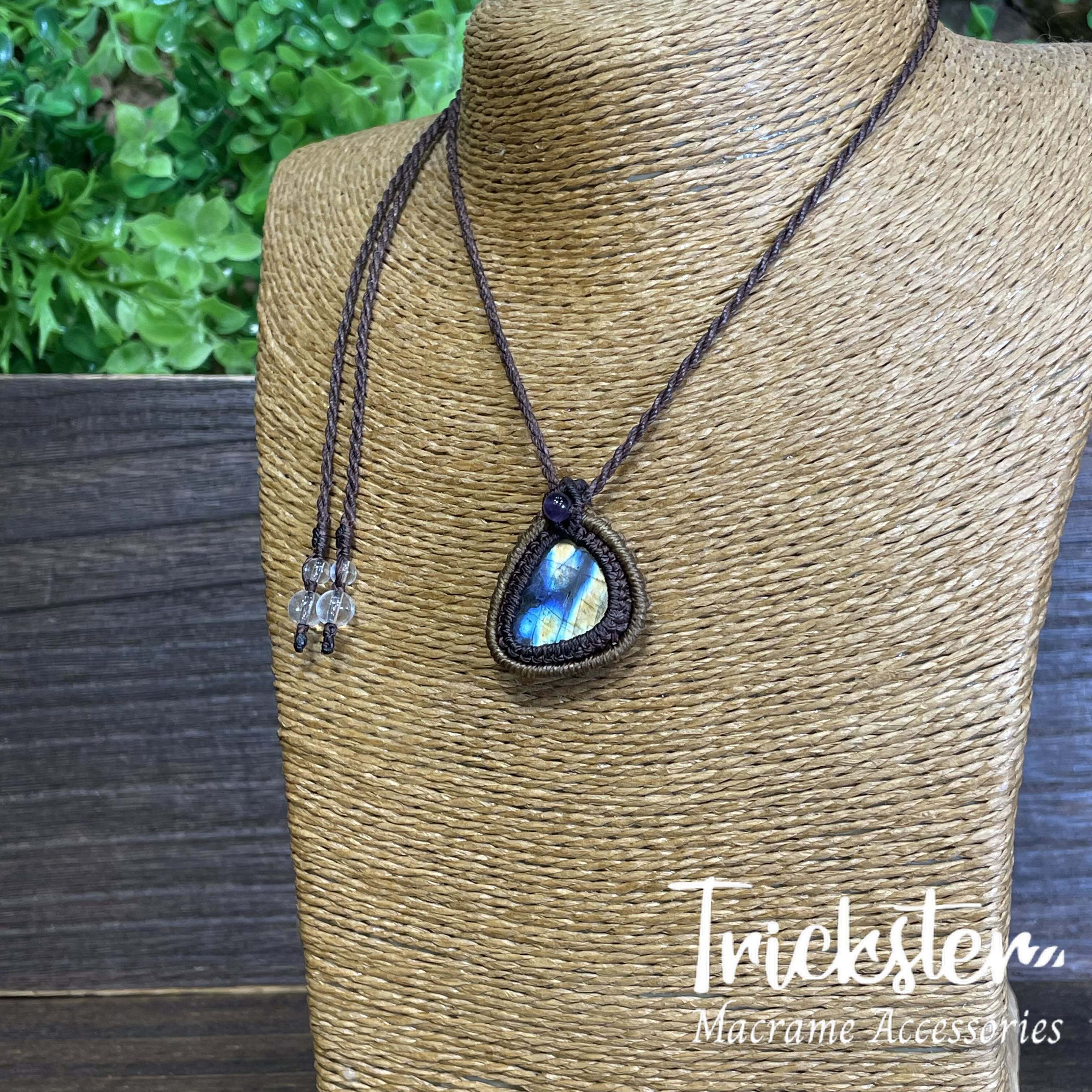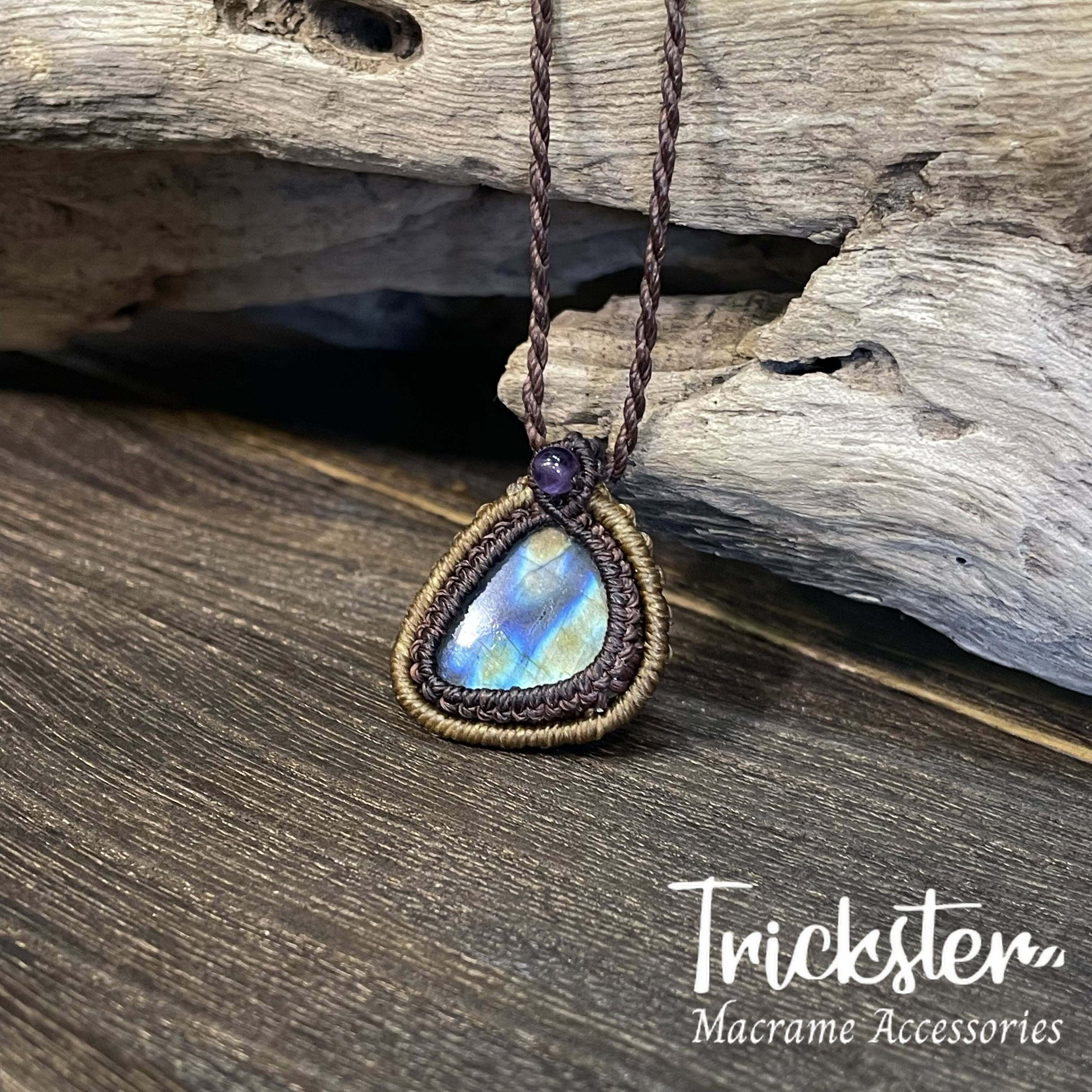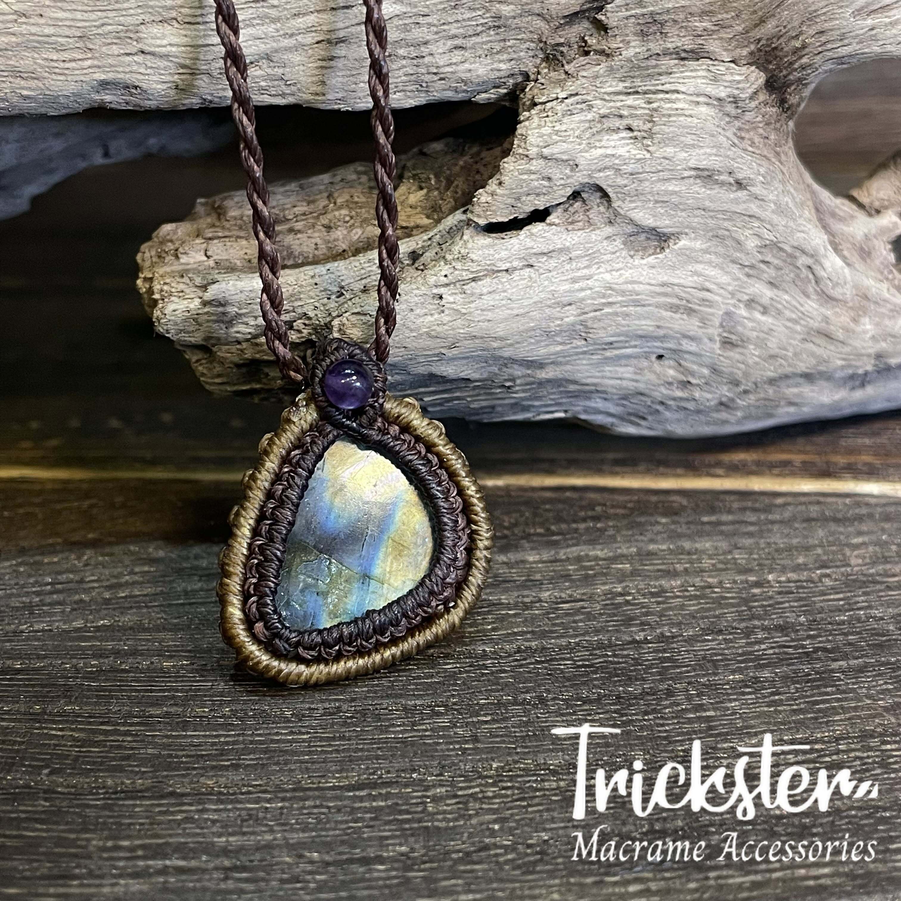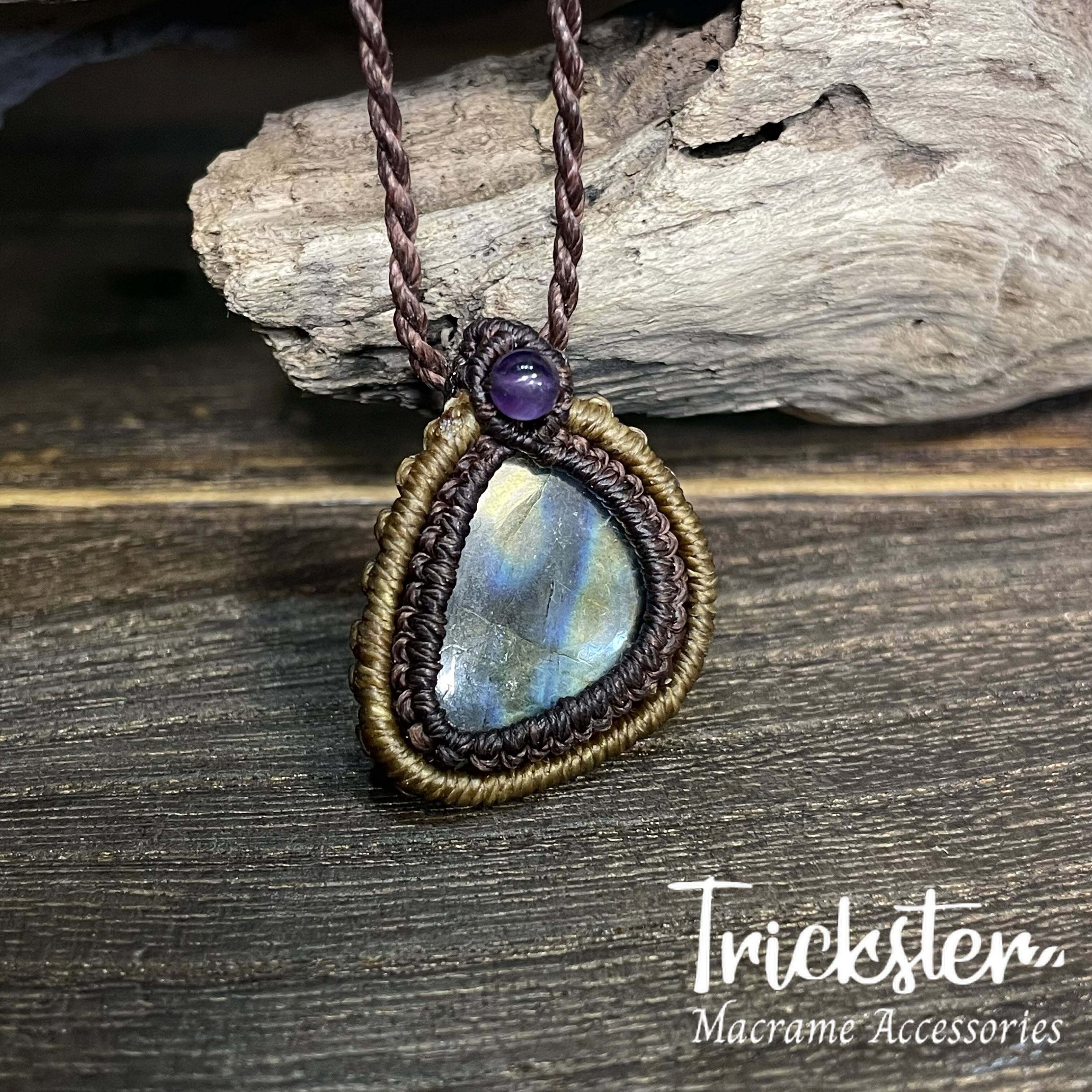 ラブラドライト アメジスト マクラメペンダント T267