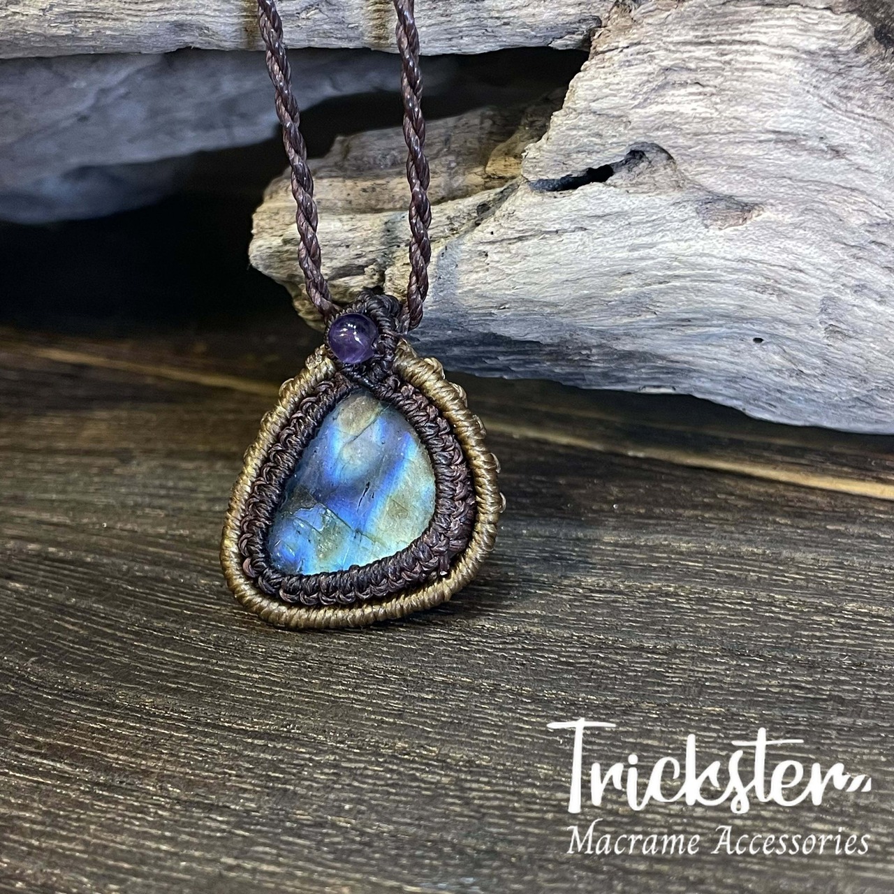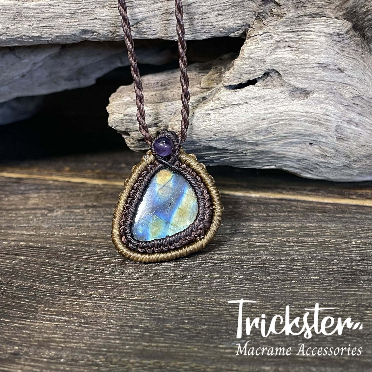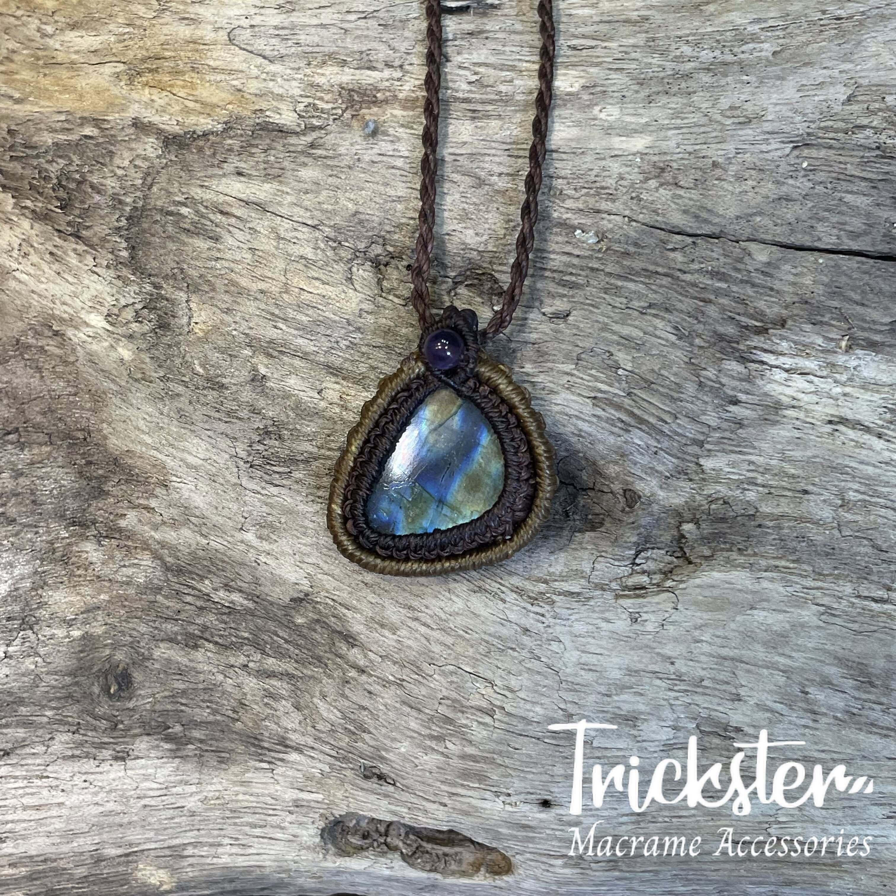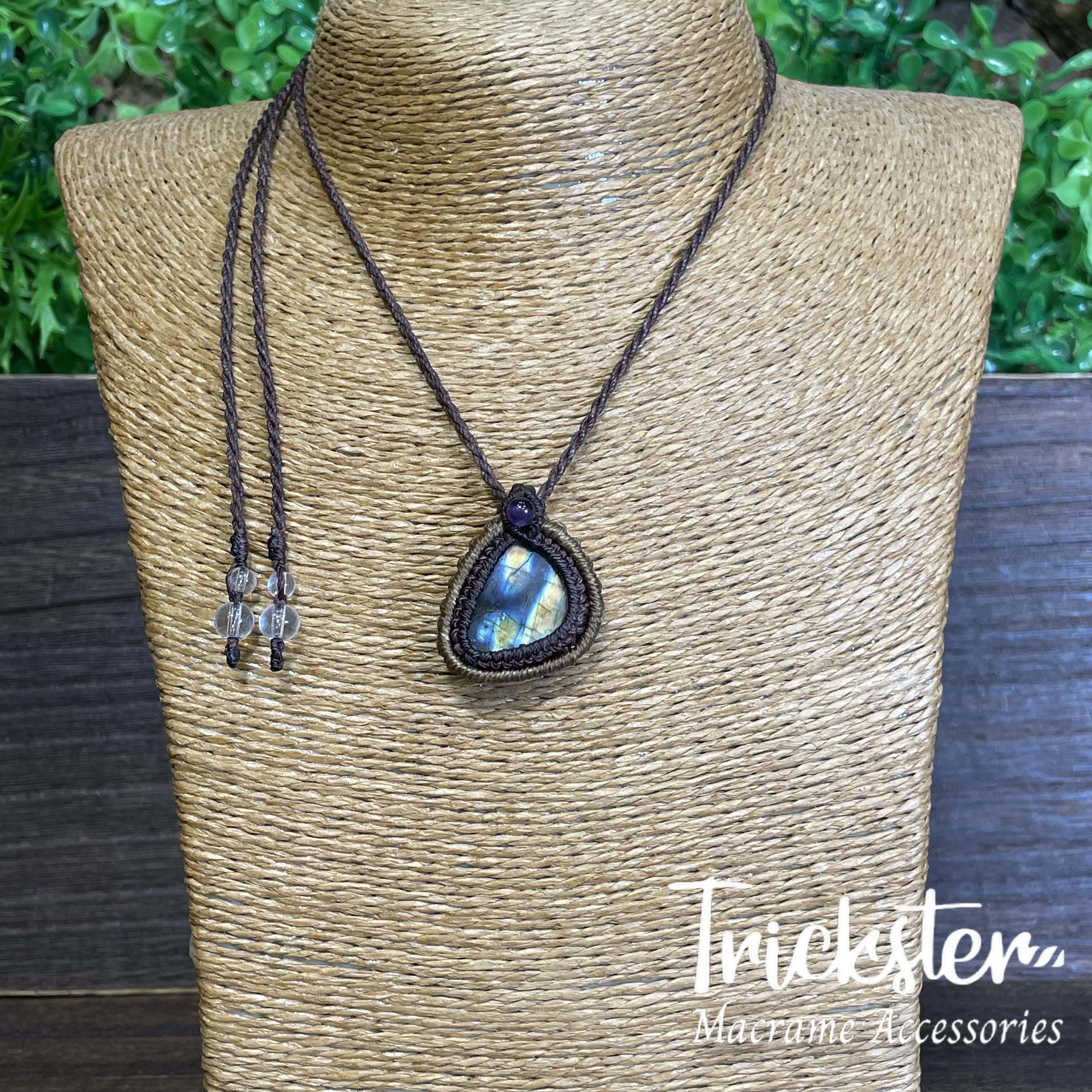 ラブラドライト アメジスト マクラメペンダント T267