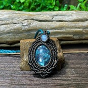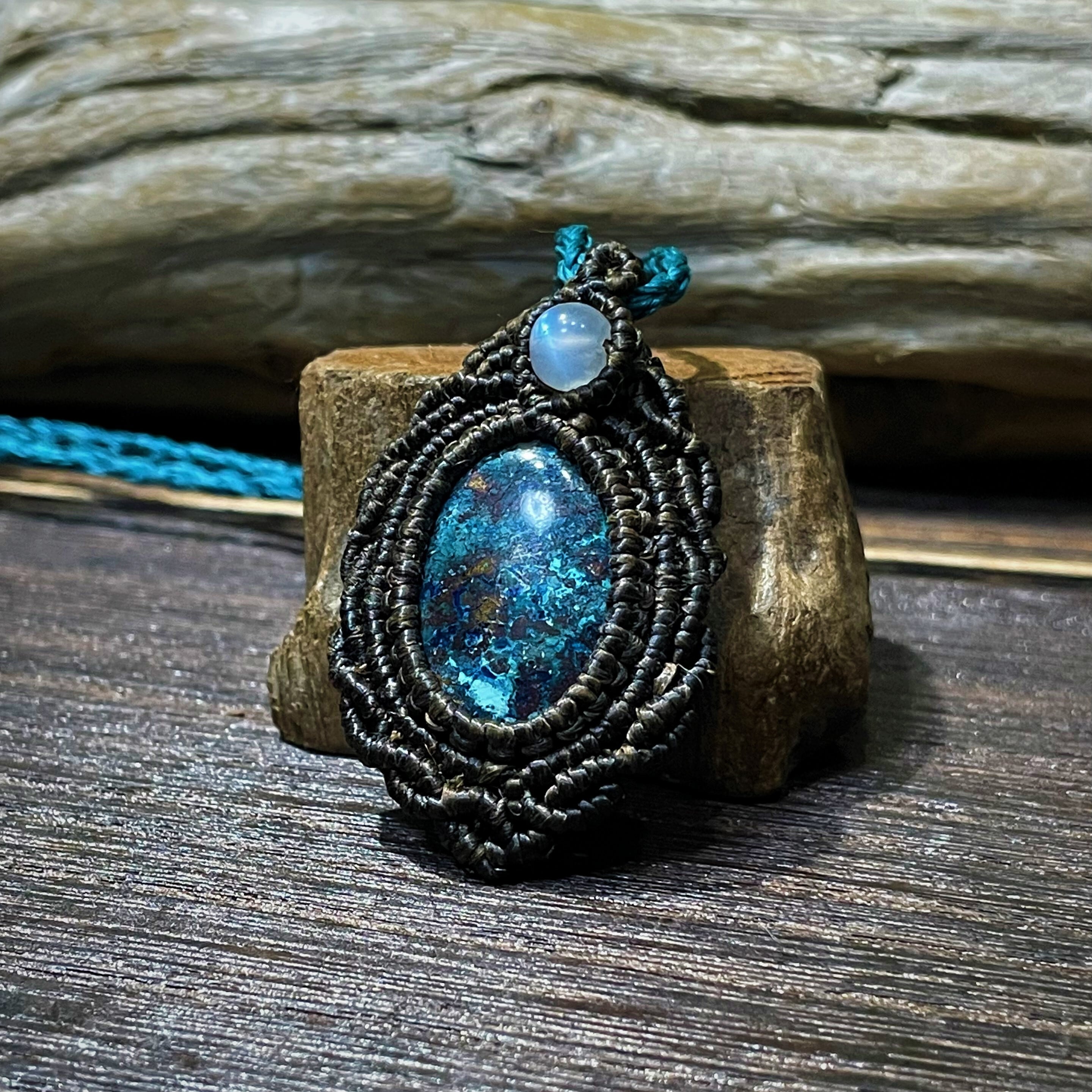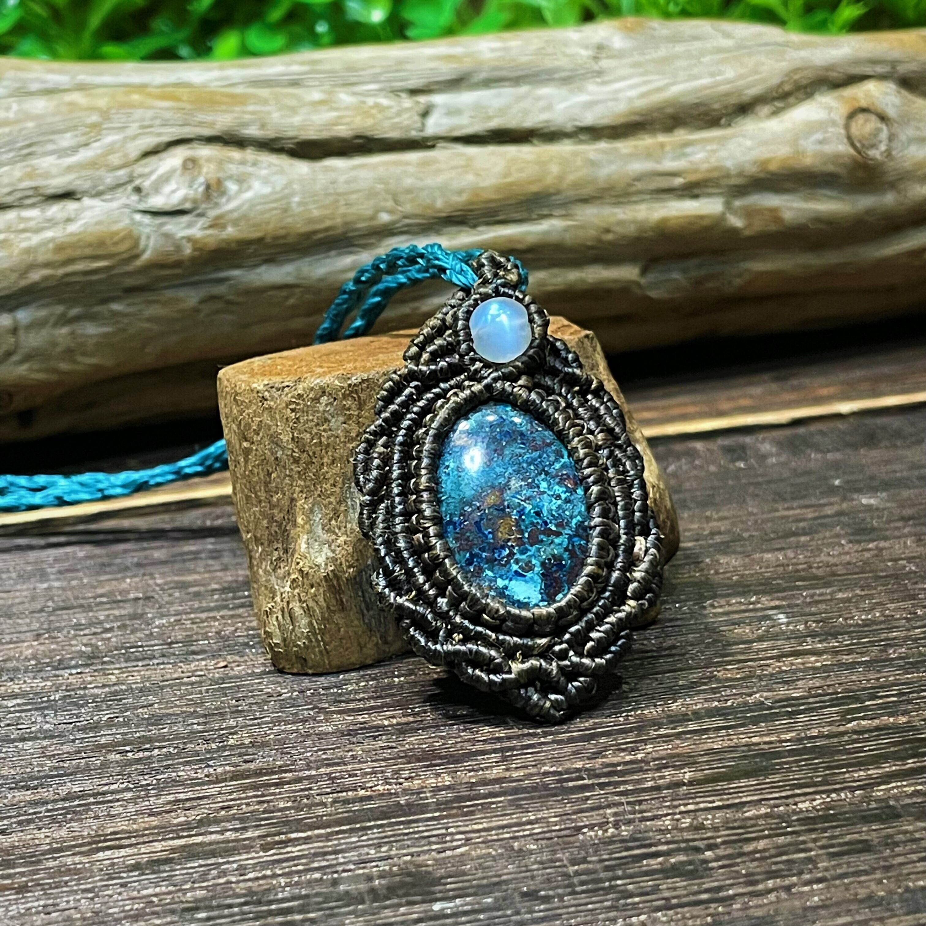 クリソコラとムーンストーンを使用したマクラメペンダントです。