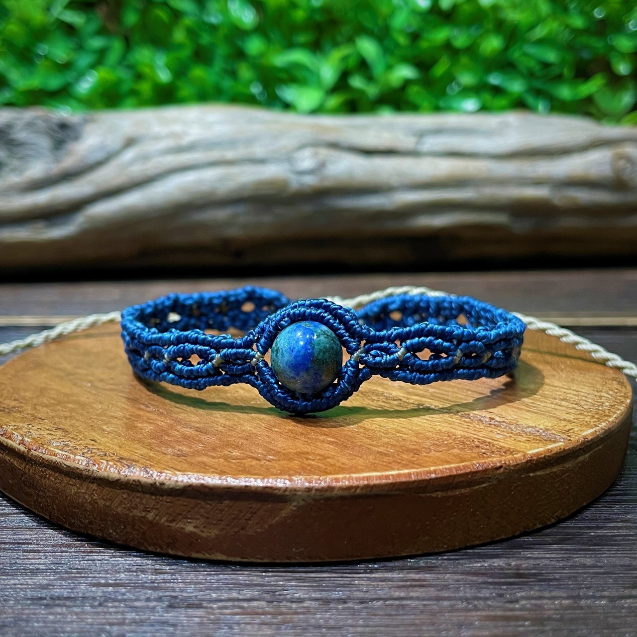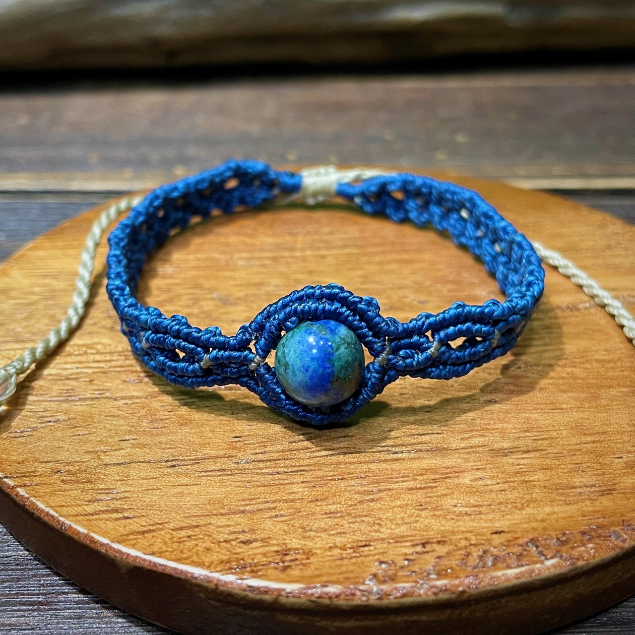 アズロマラカイトを使用したマクラメブレスレットです✩.*˚
