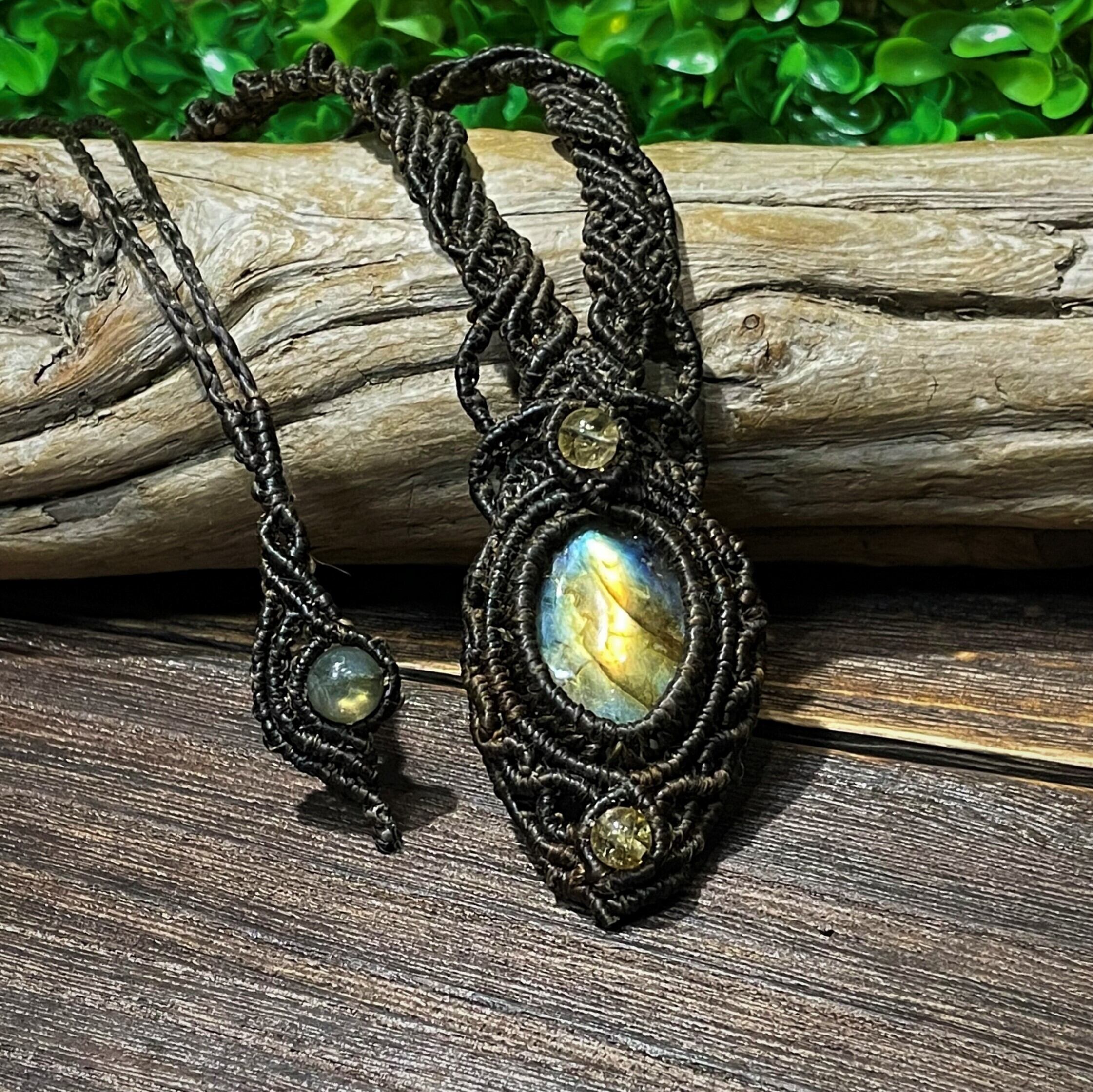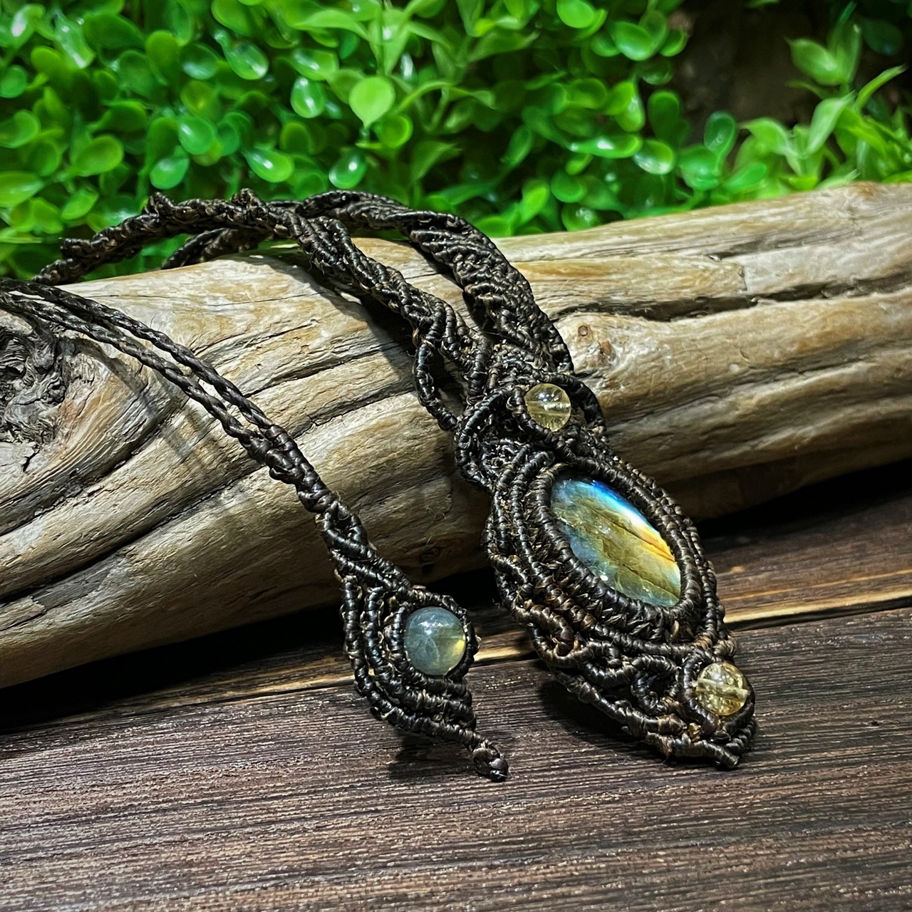 ラブラドライトとシトリンを使用したマクラメペンダントです。