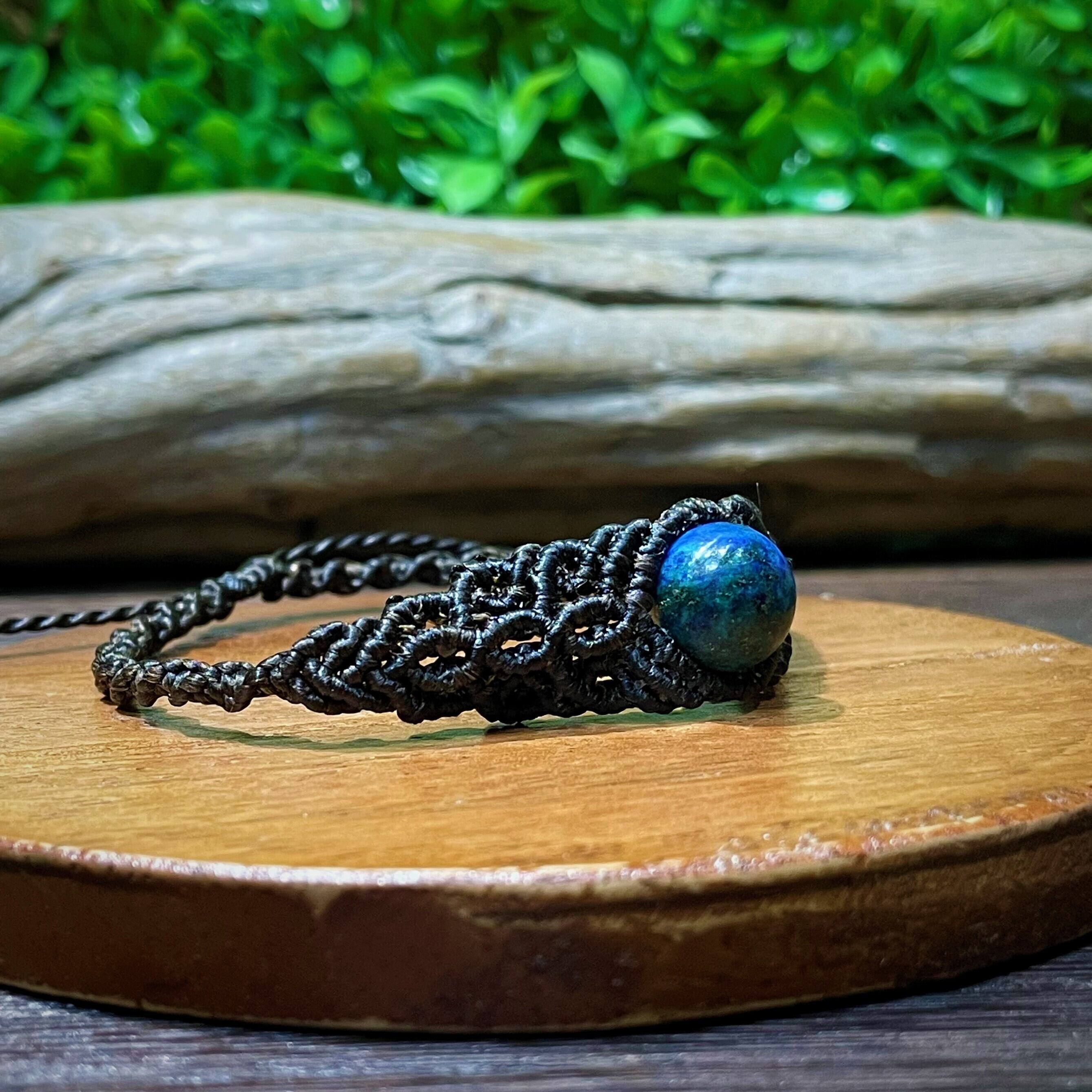 アズロマラカイトを使用したマクラメブレスレットです✩.*˚