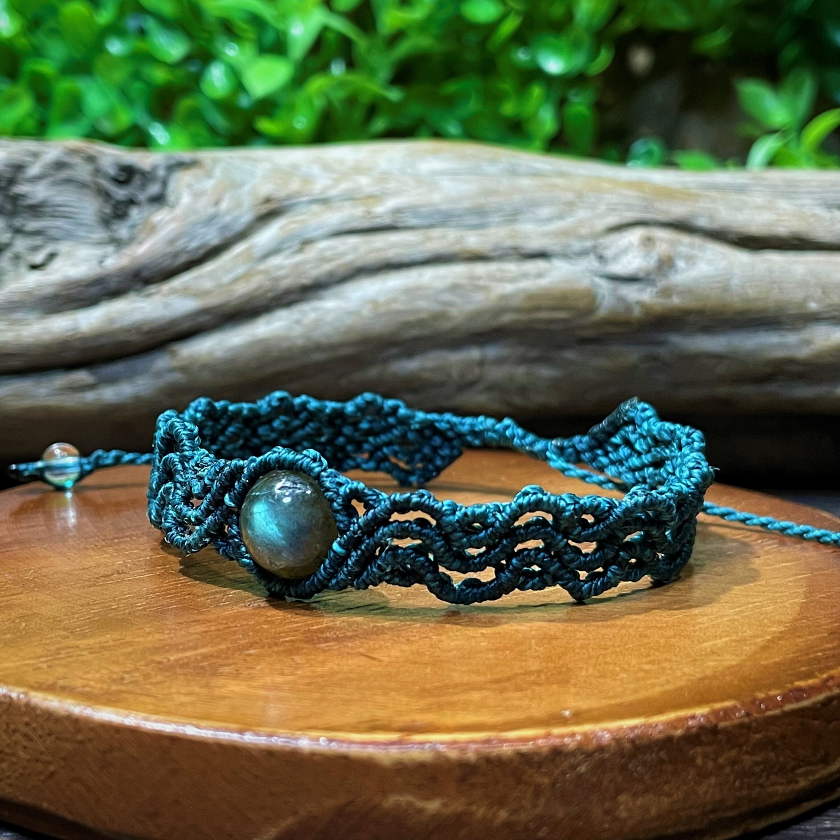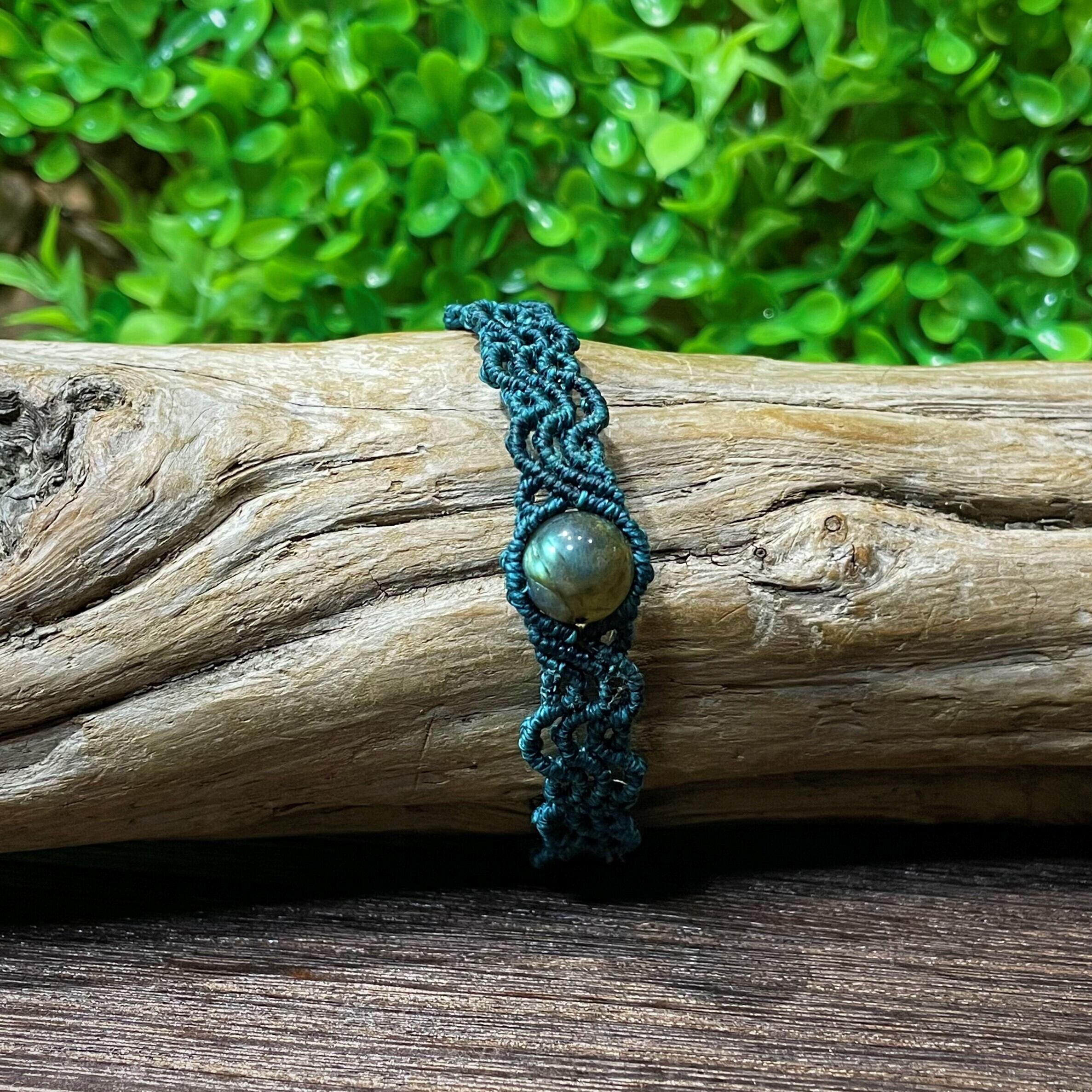 ラブラドライトを使用したマクラメブレスレットです✩.*˚