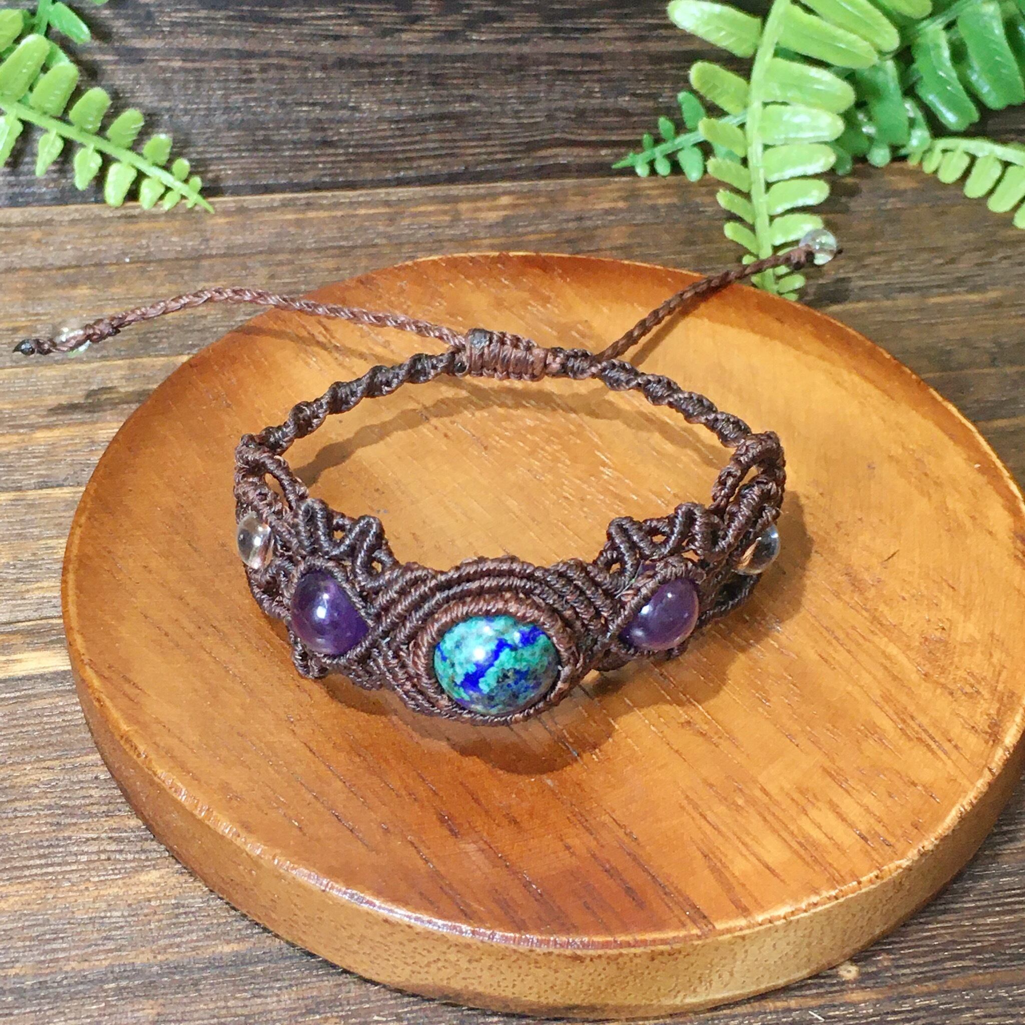 アズロマラカイト、アメジスト、クォーツを使用したマクラメブレスレットです✩.*˚