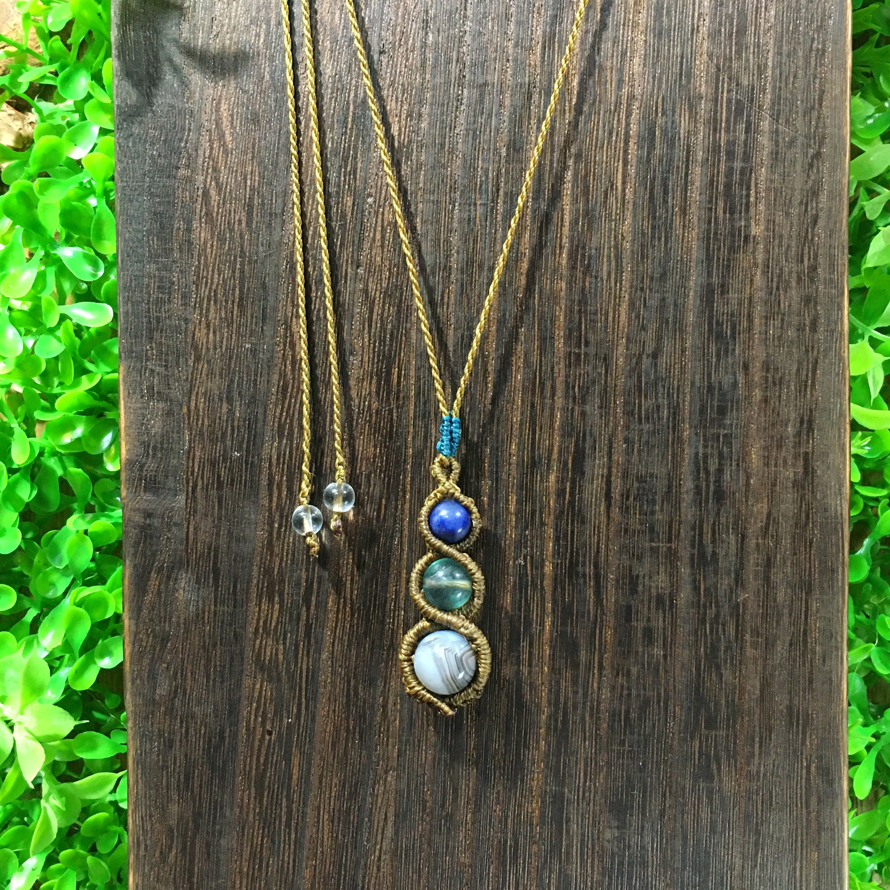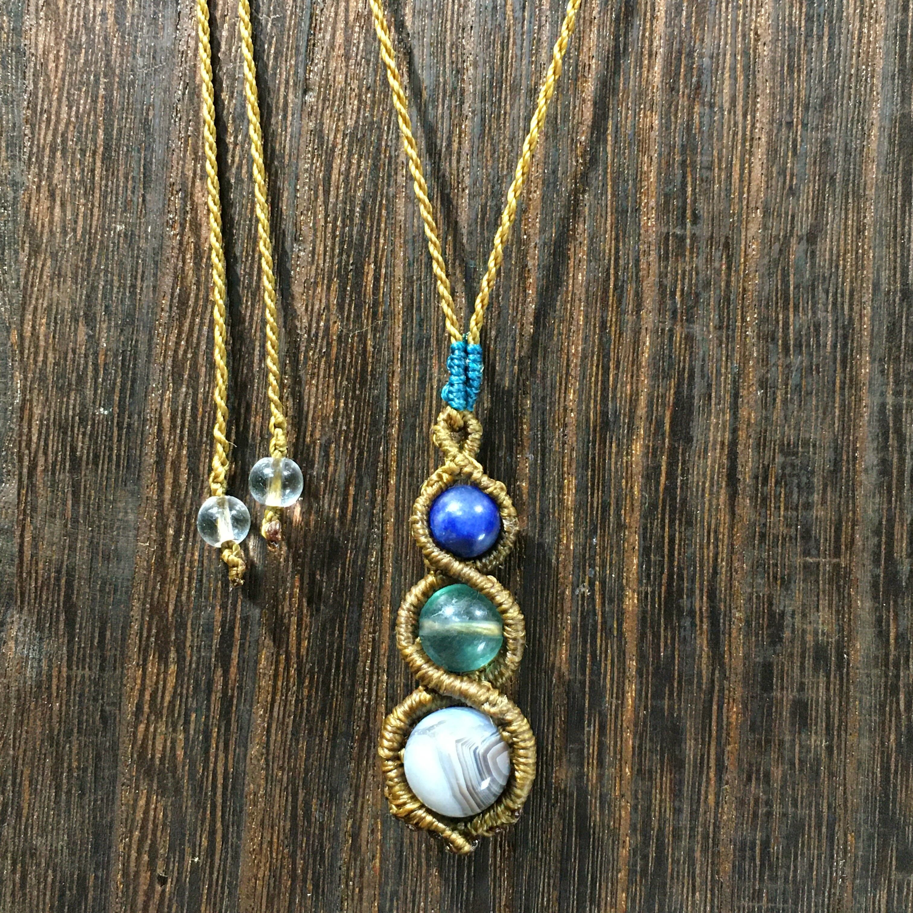ボツワナアゲートとフローライトとブルークォーツを使用したマクラメペンダントです✩.*˚