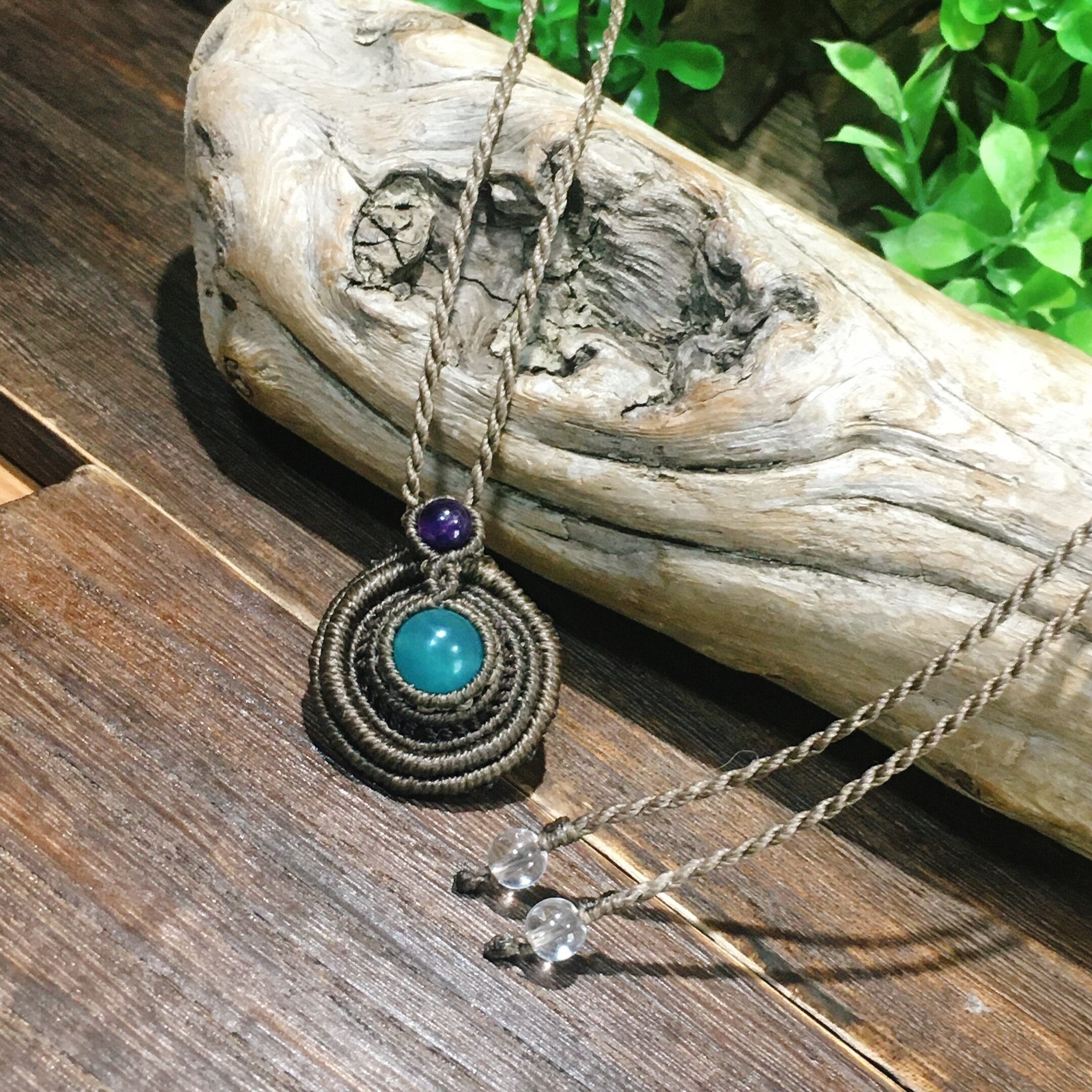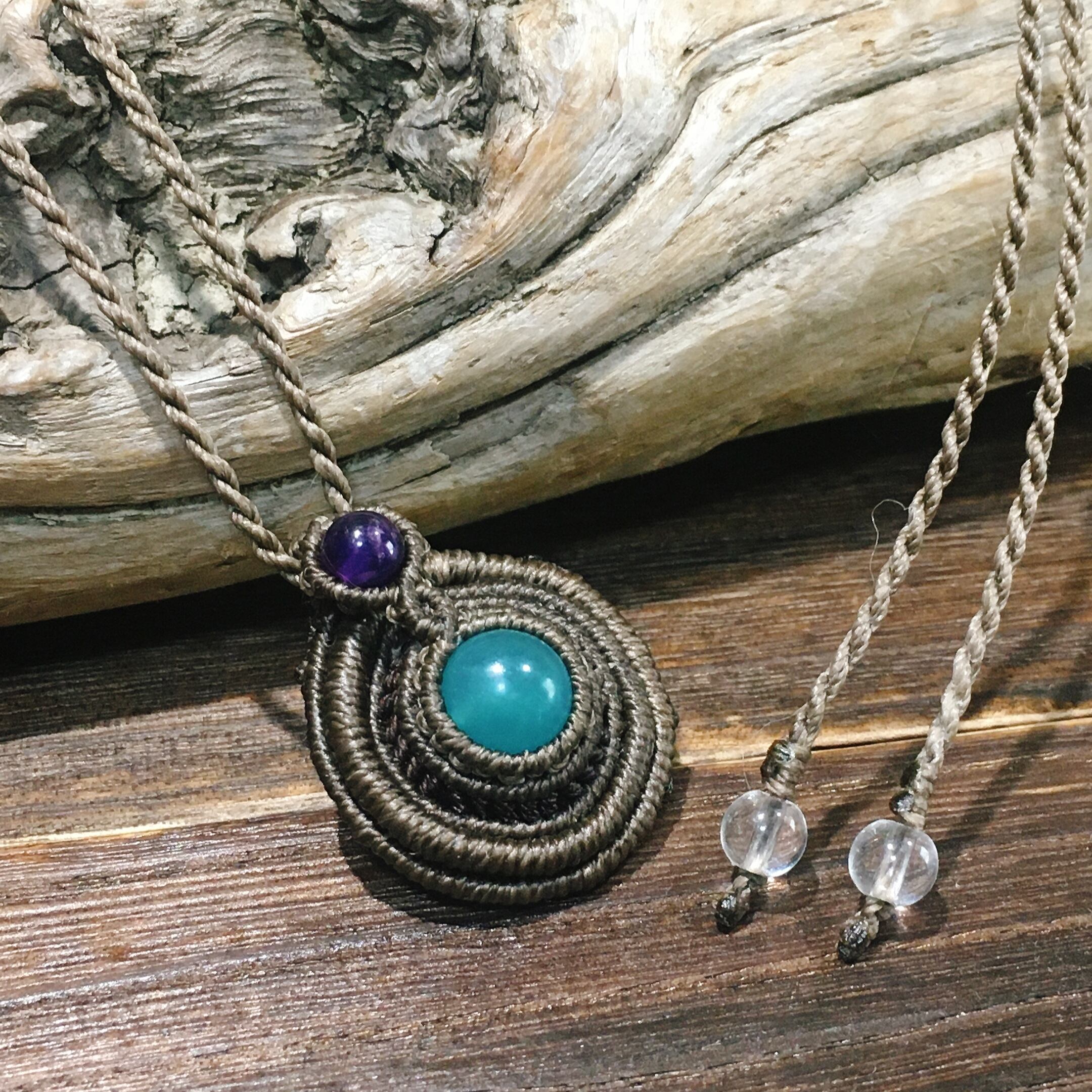 アマゾナイトシリカとアメジストを使用したマクラメペンダントです✩.*˚