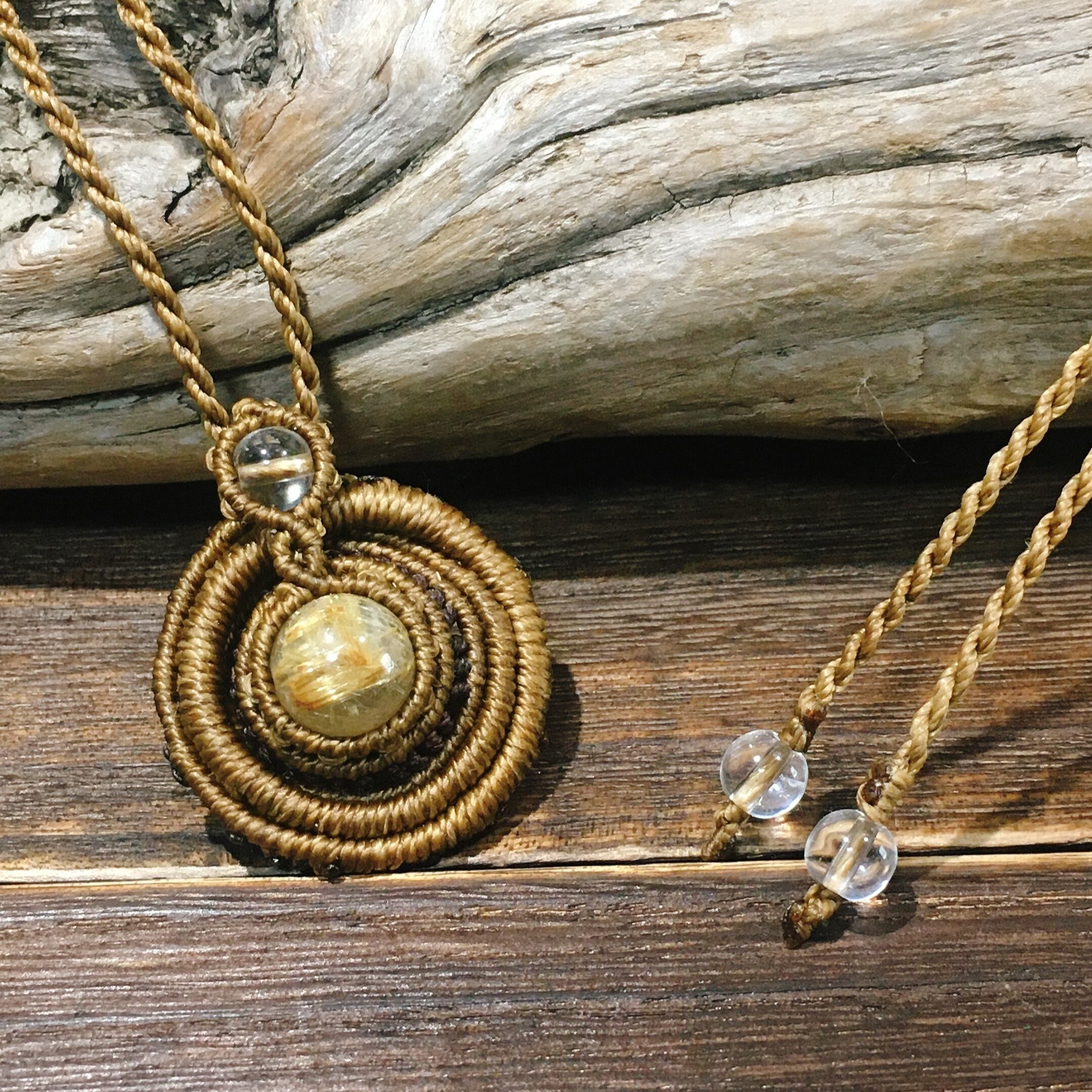 ルチルクォーツとクォーツを使用したマクラメペンダントです✩.*˚