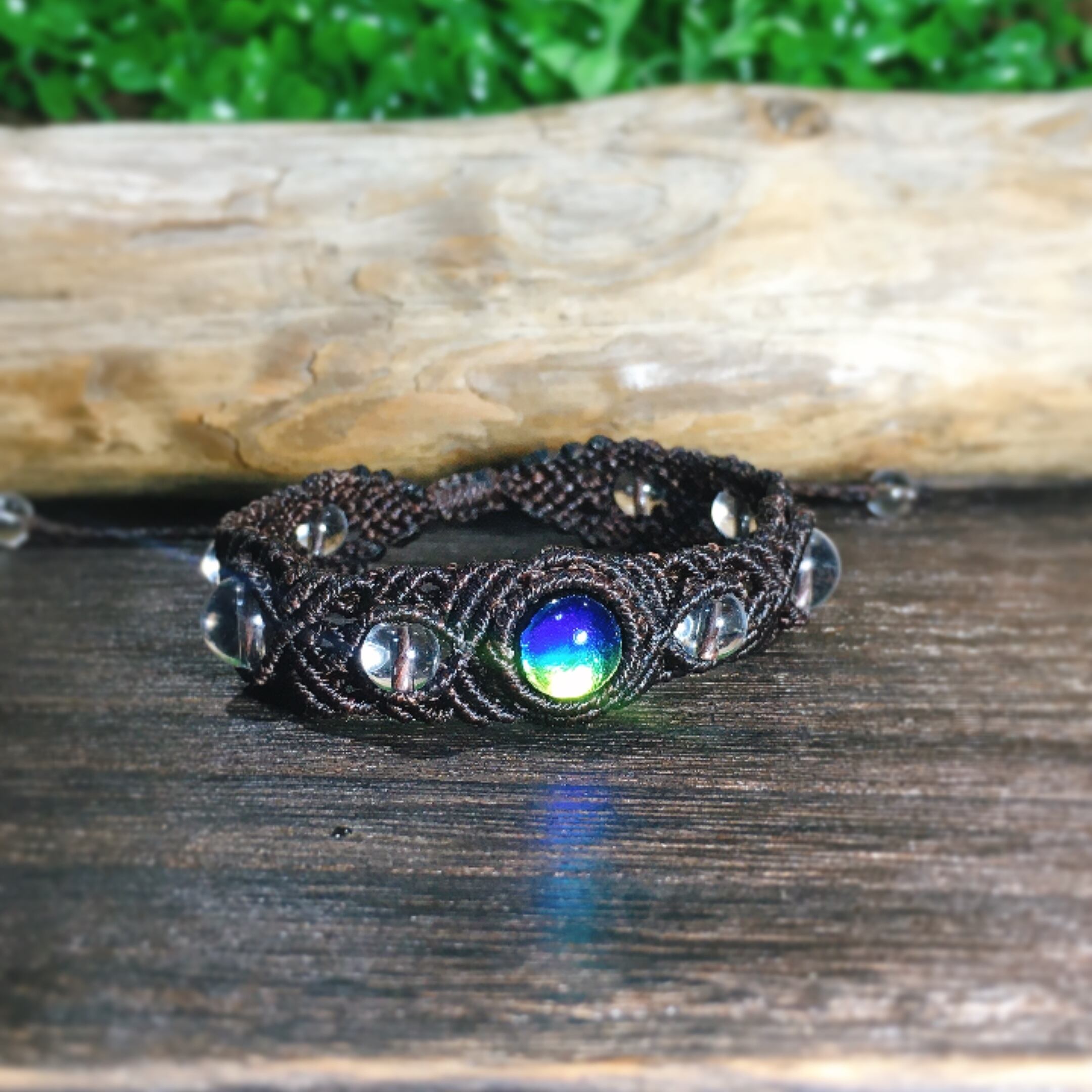ホタルガラス、クォーツを使用したマクラメブレスレットです✩.*˚