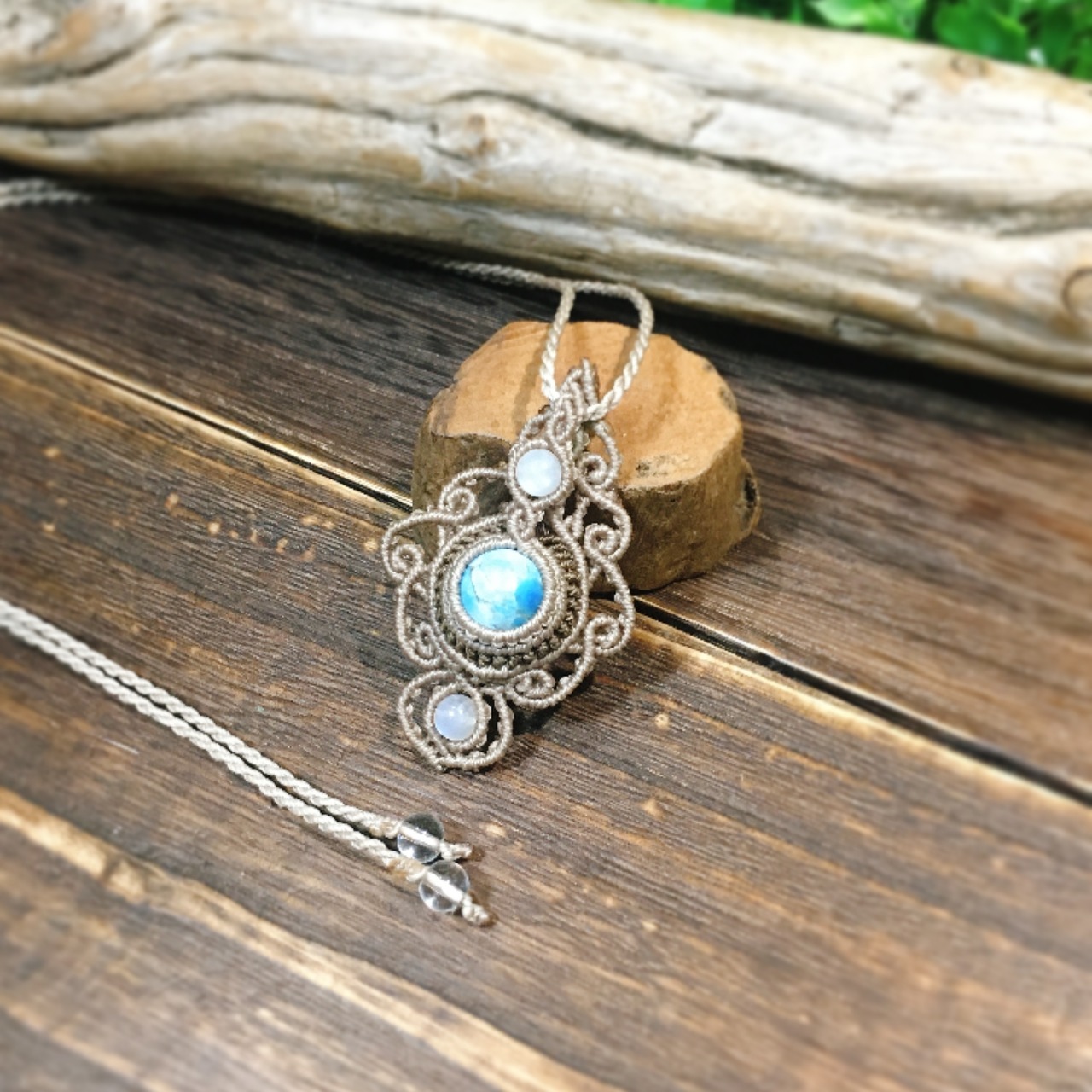 アパタイト、レインボームーンストーンを使用したマクラメペンダントです✩.*˚
