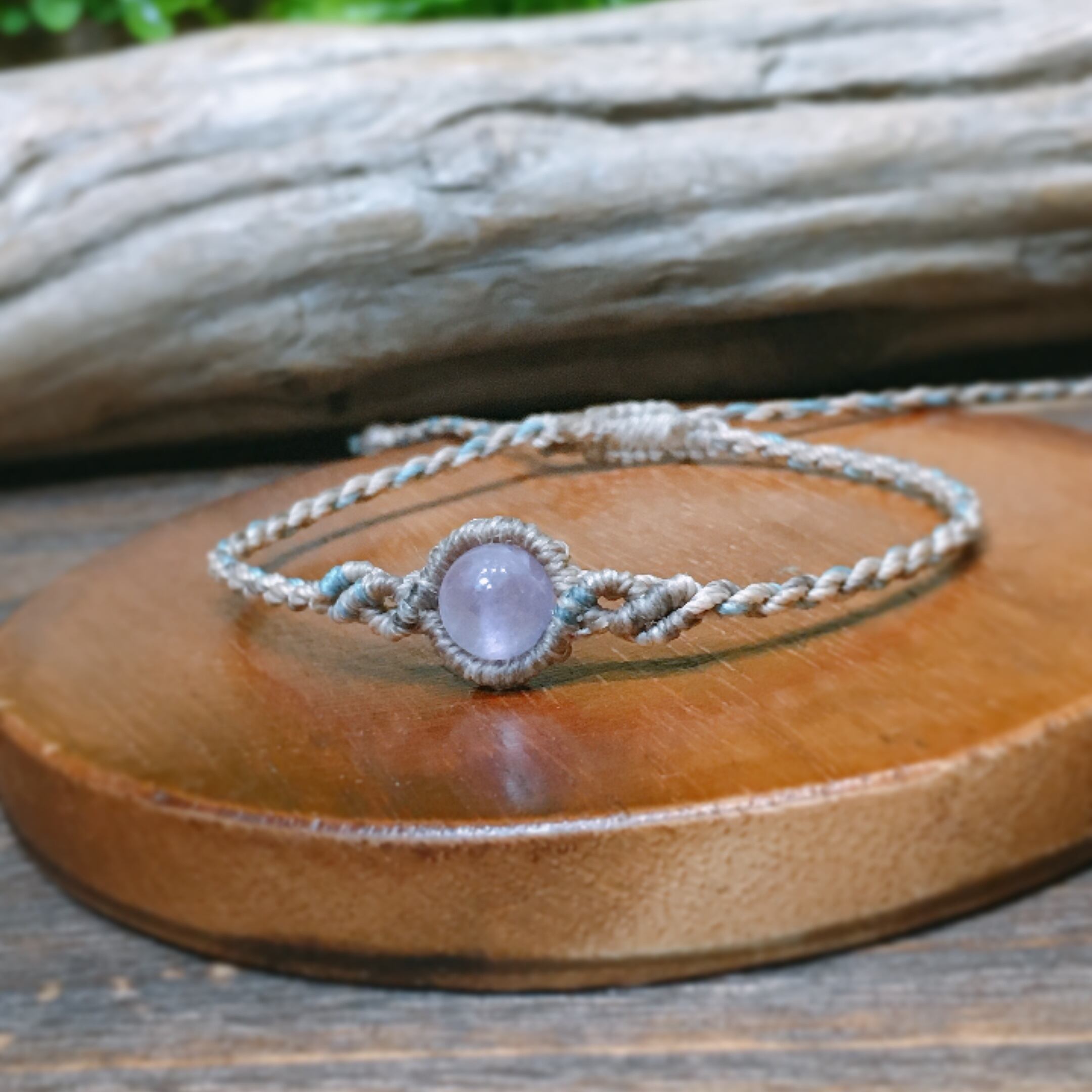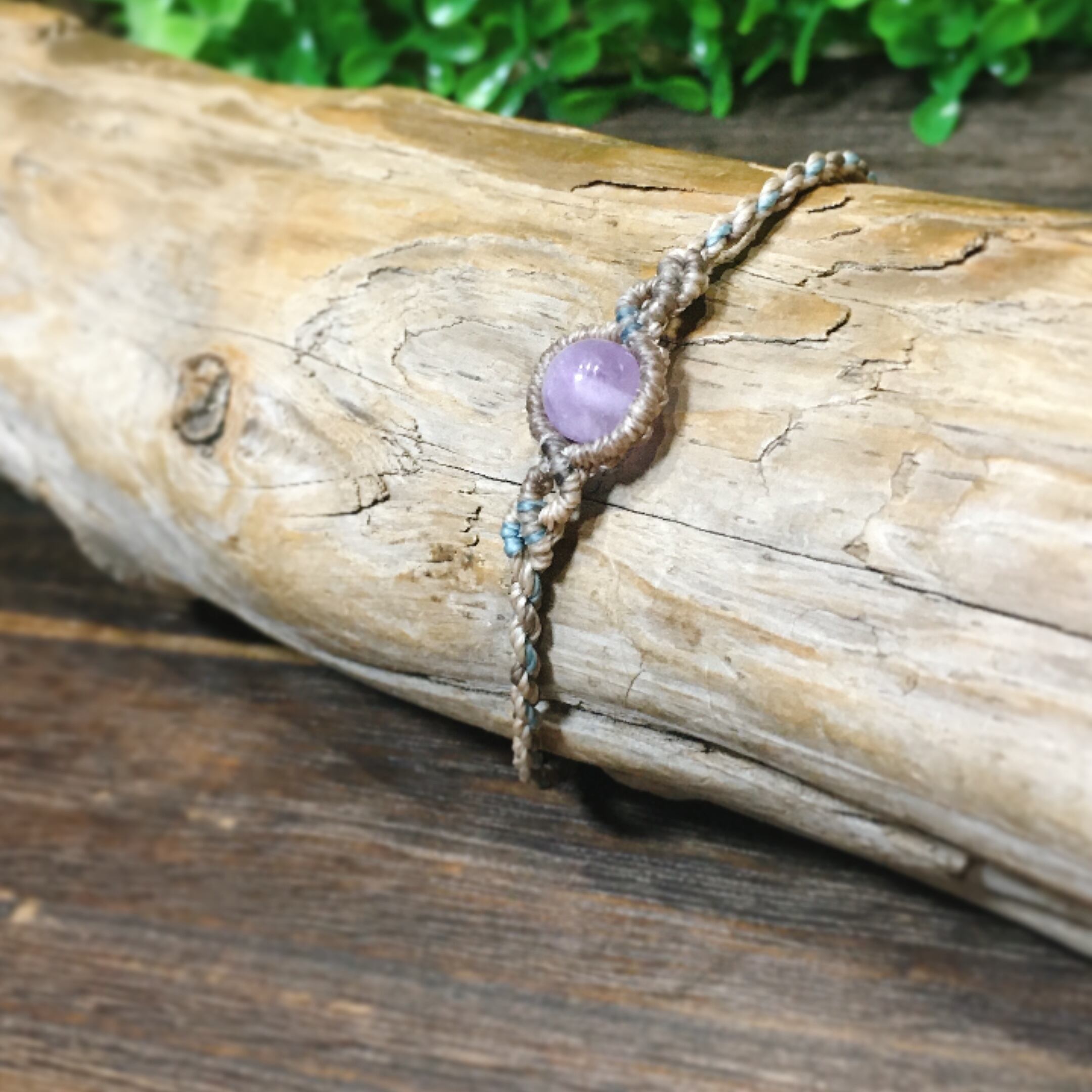 ラベンダーアメジストを使用したマクラメブレスレットです。