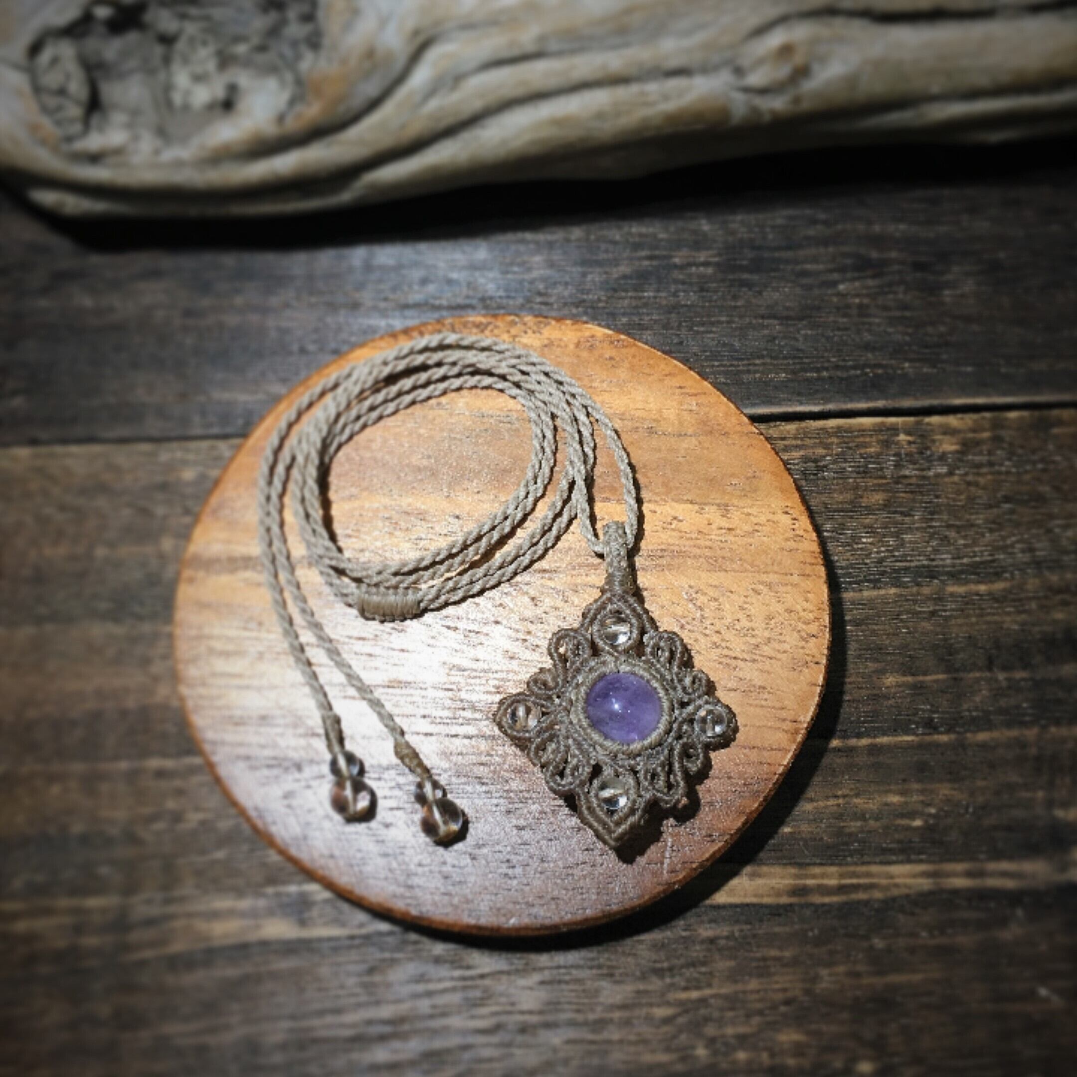 アメジスト、クォーツを使用したマクラメペンダントです✩.*˚