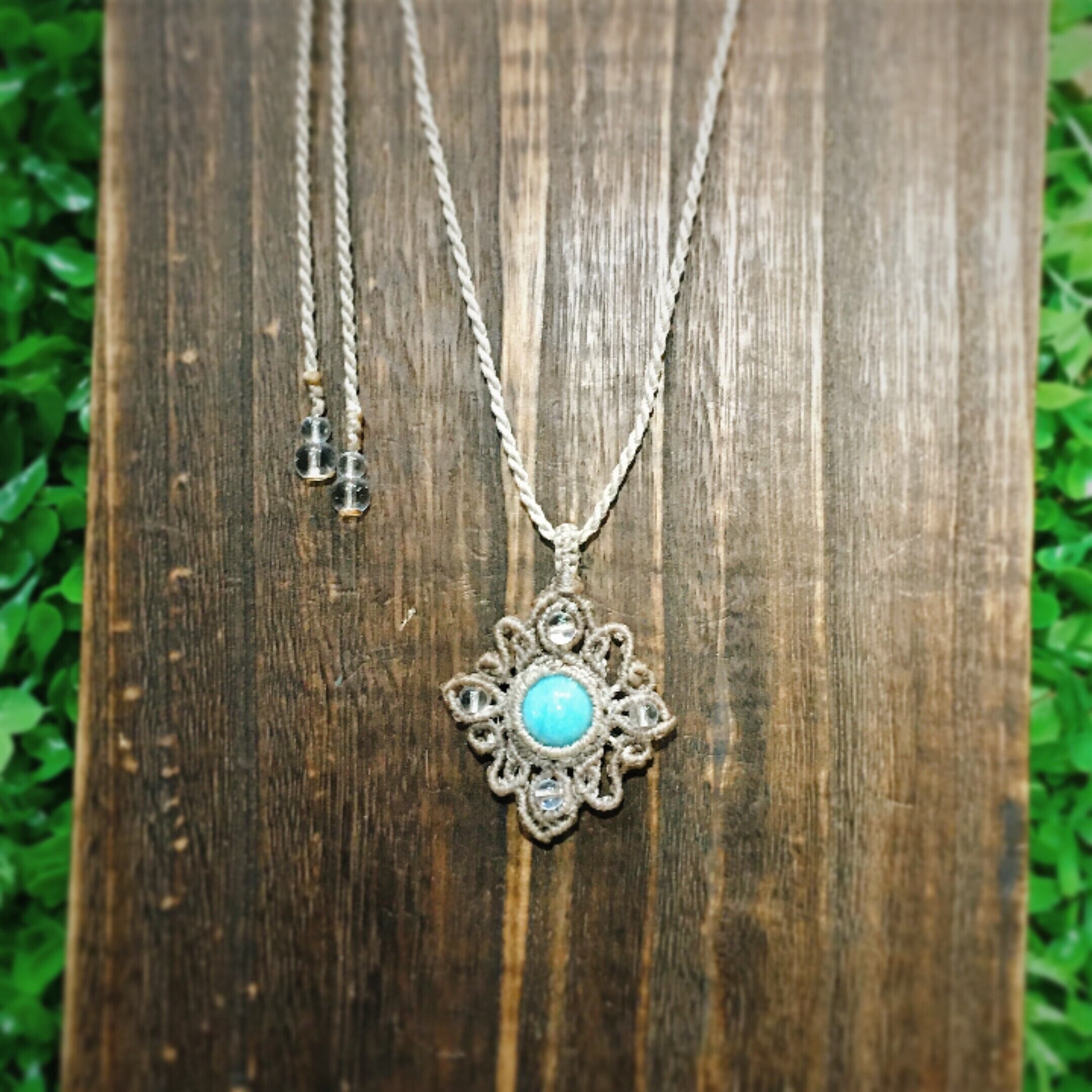 アマゾナイト、クォーツを使用したマクラメペンダントです✩.*˚