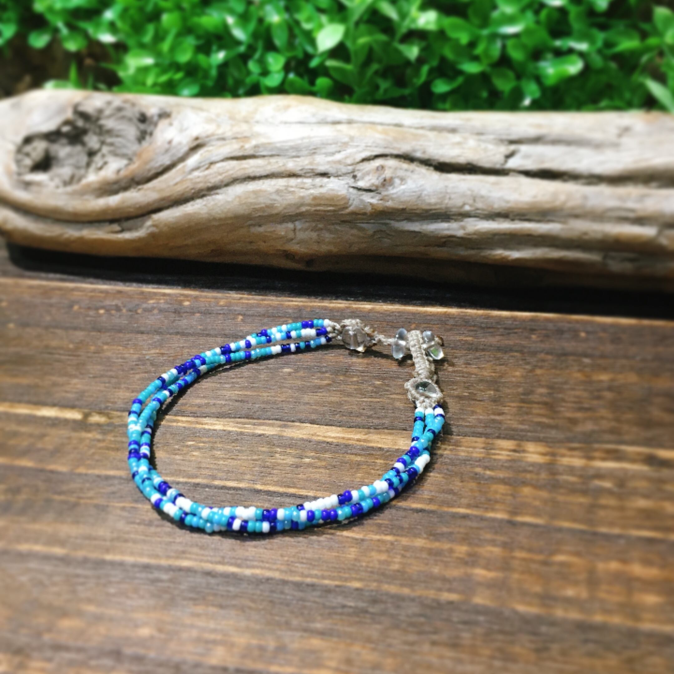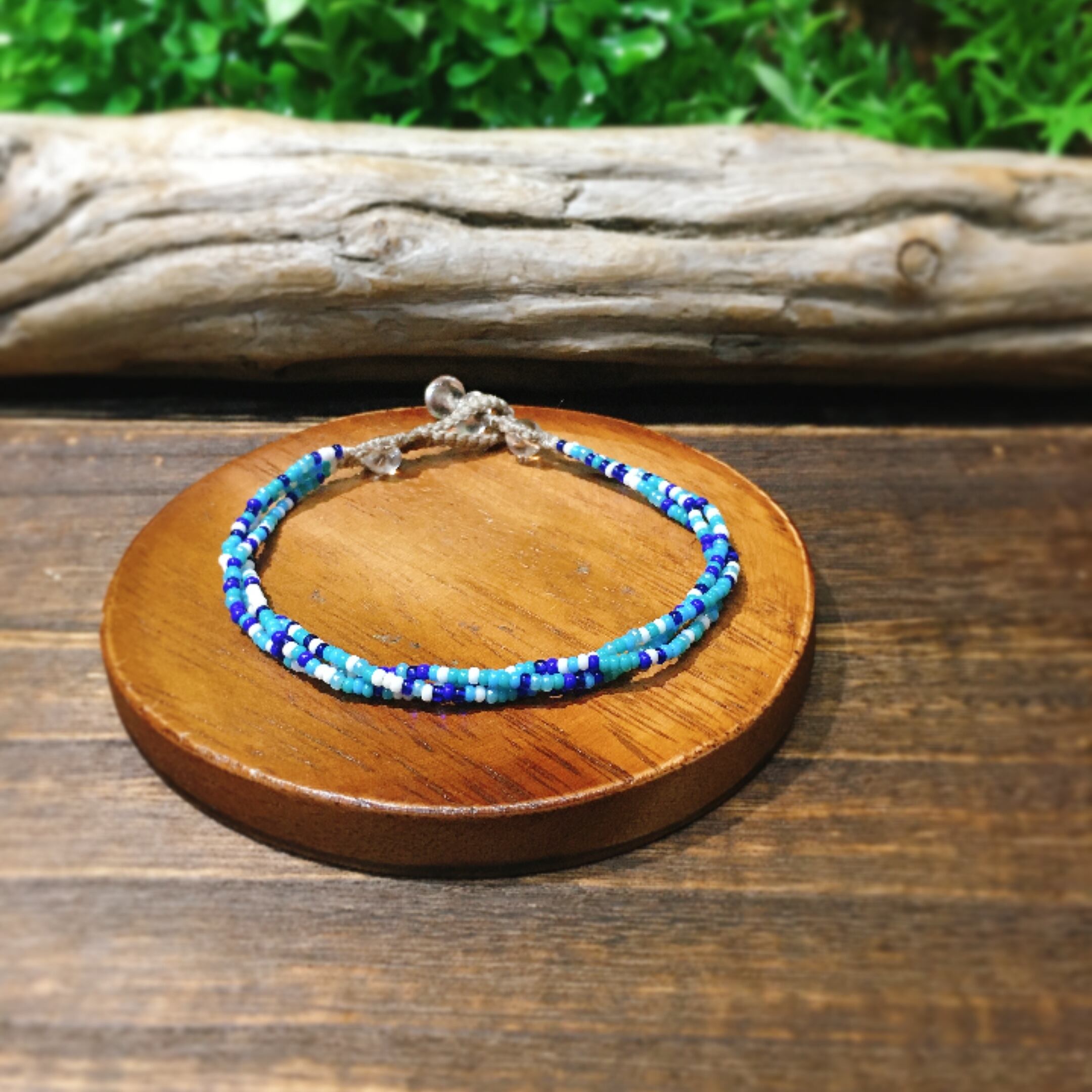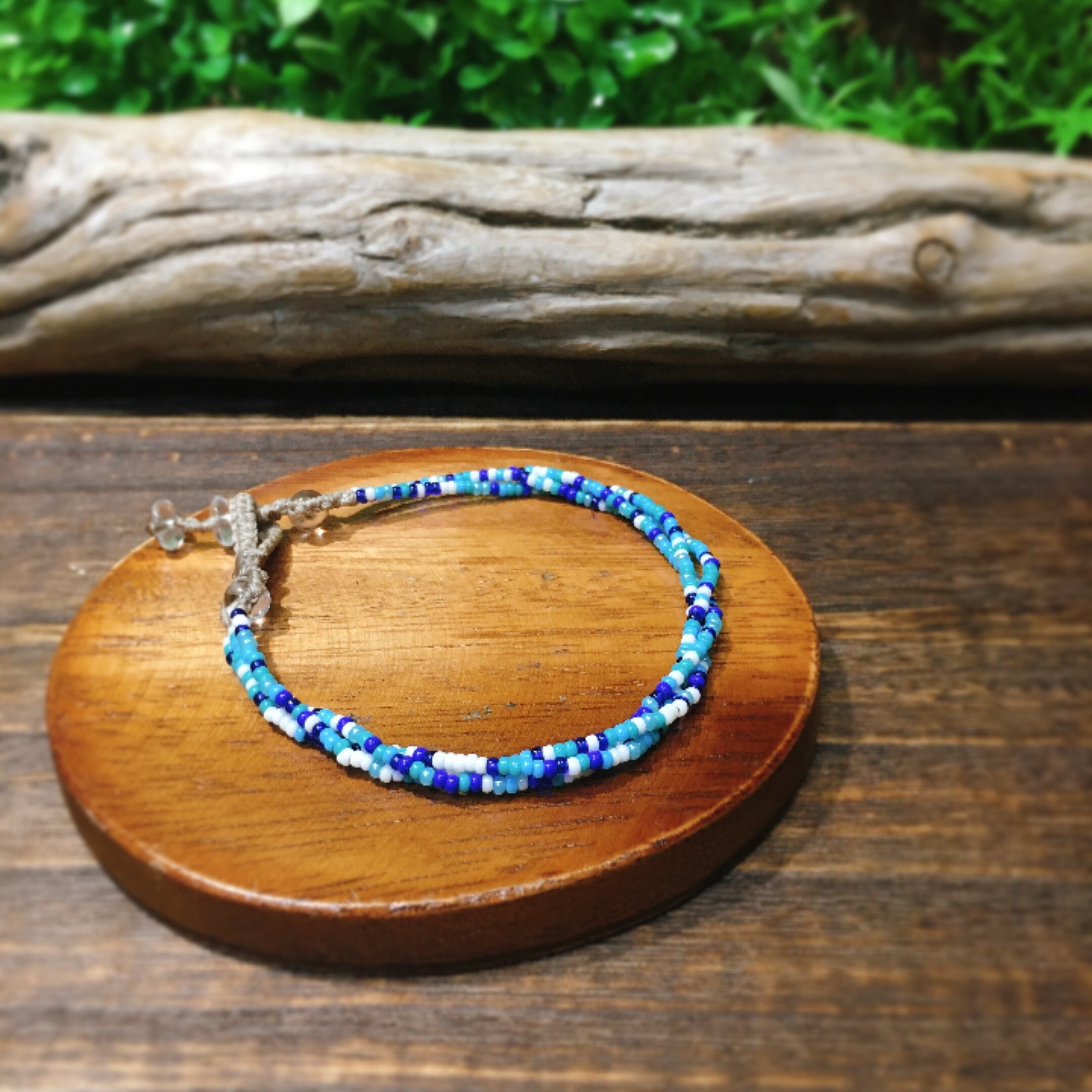 極小サイズのシードビーズを使用した3連のアンクレットです。