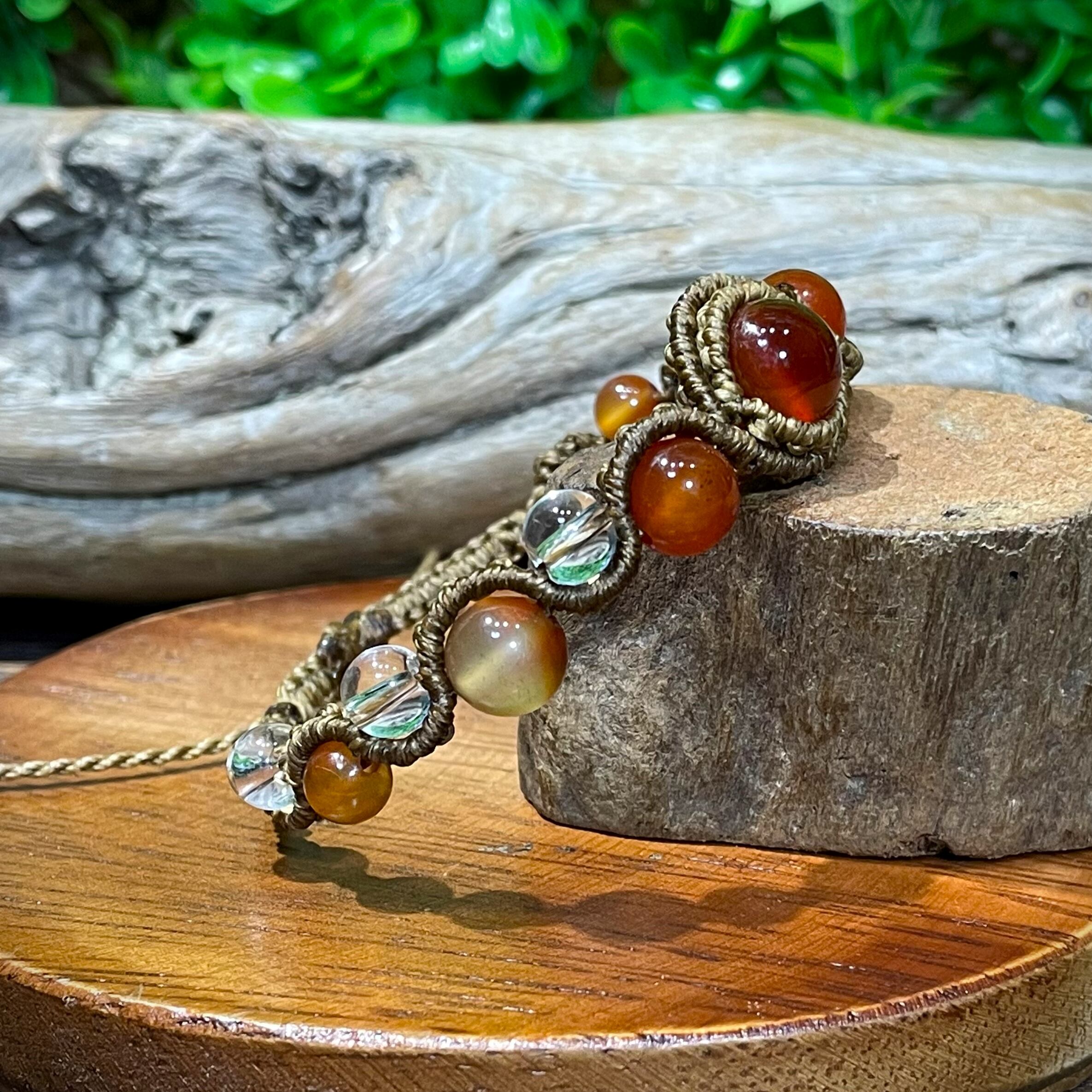 カーネリアンとクォーツを使用したマクラメブレスレットです。