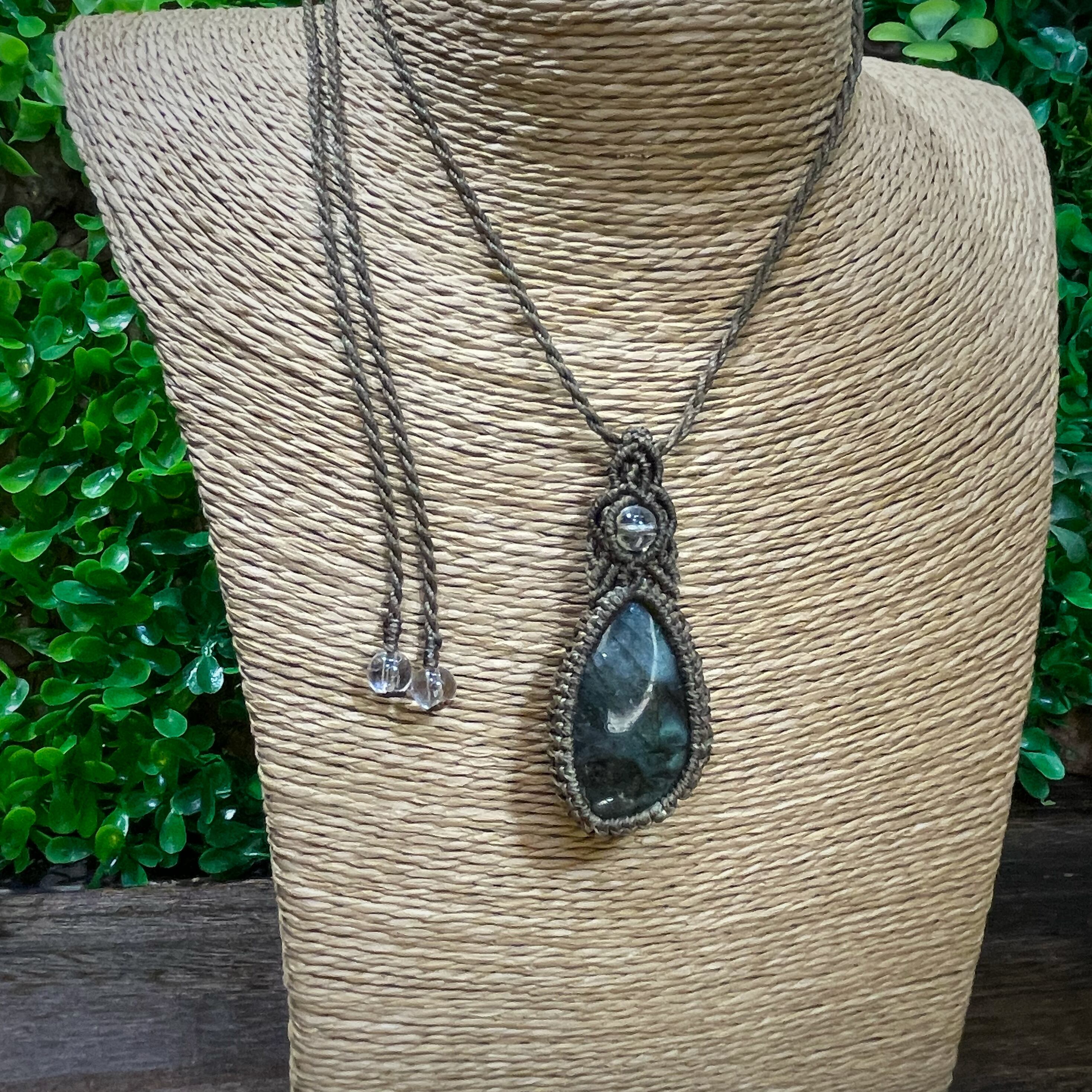 ラブラドライトを使用したマクラメペンダントです✩.*˚