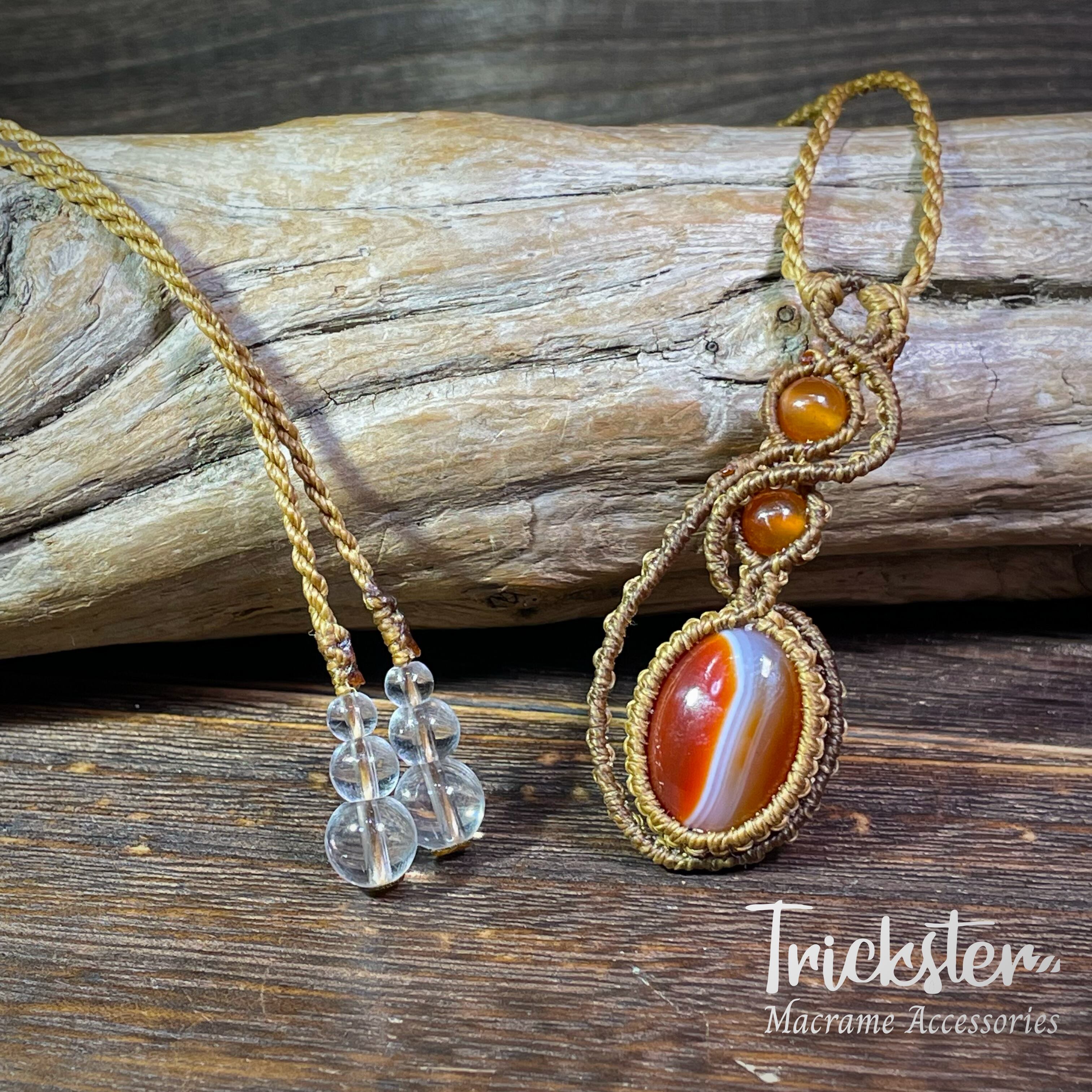サードオニクスとカーネリアンを使用したマクラメペンダントです。
