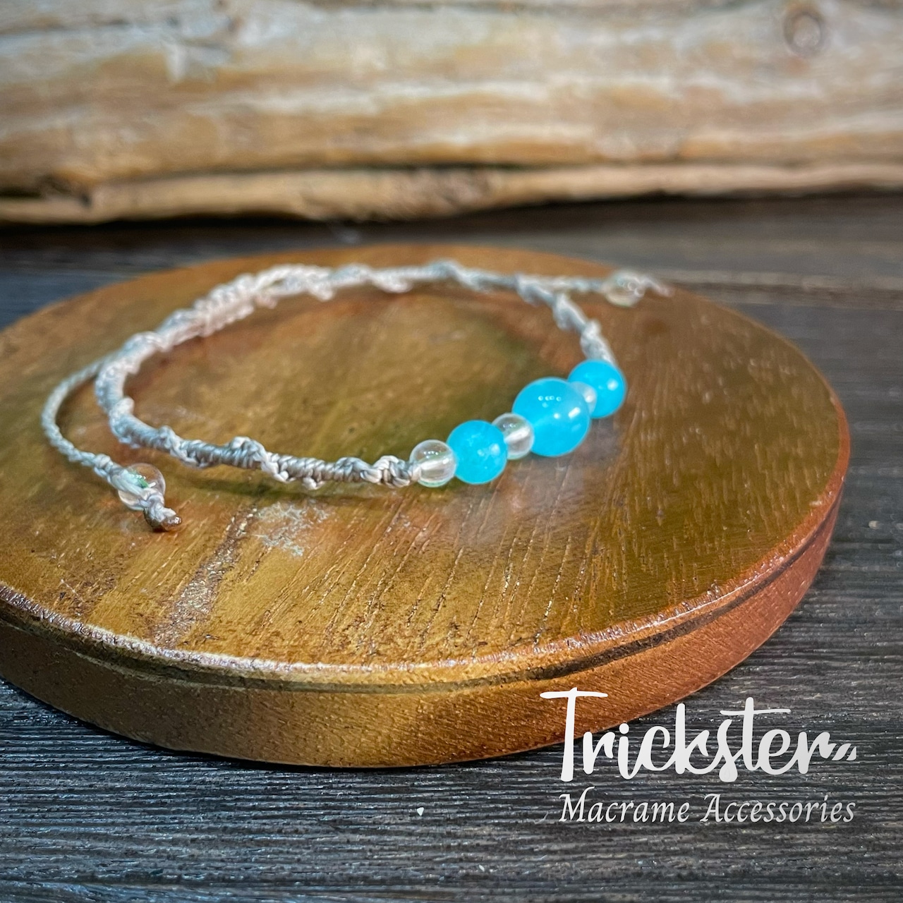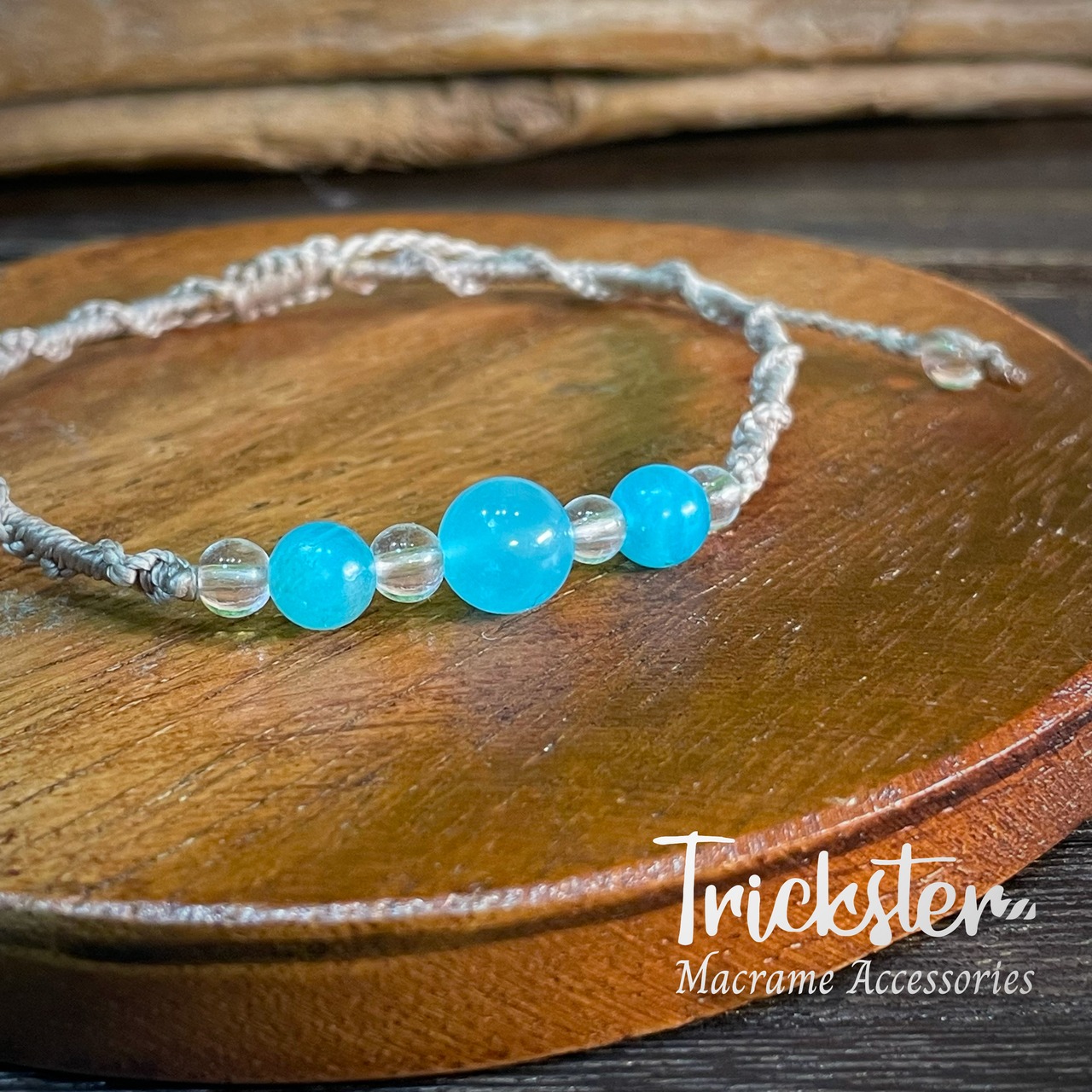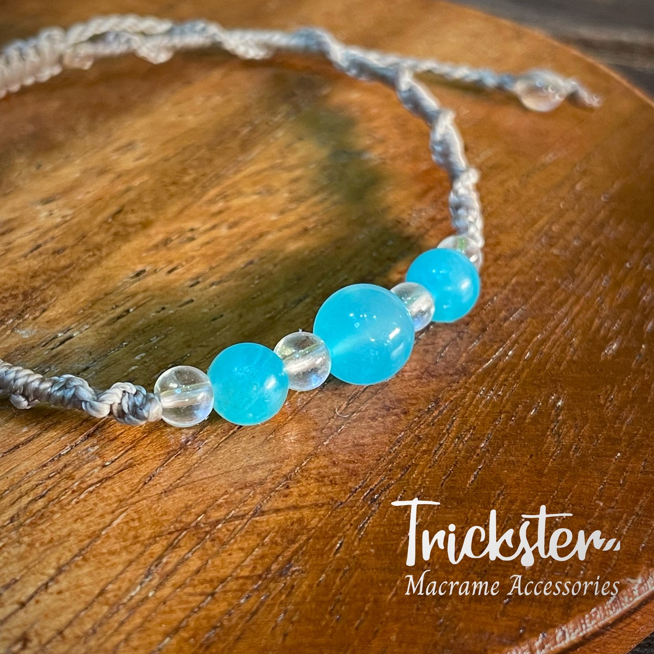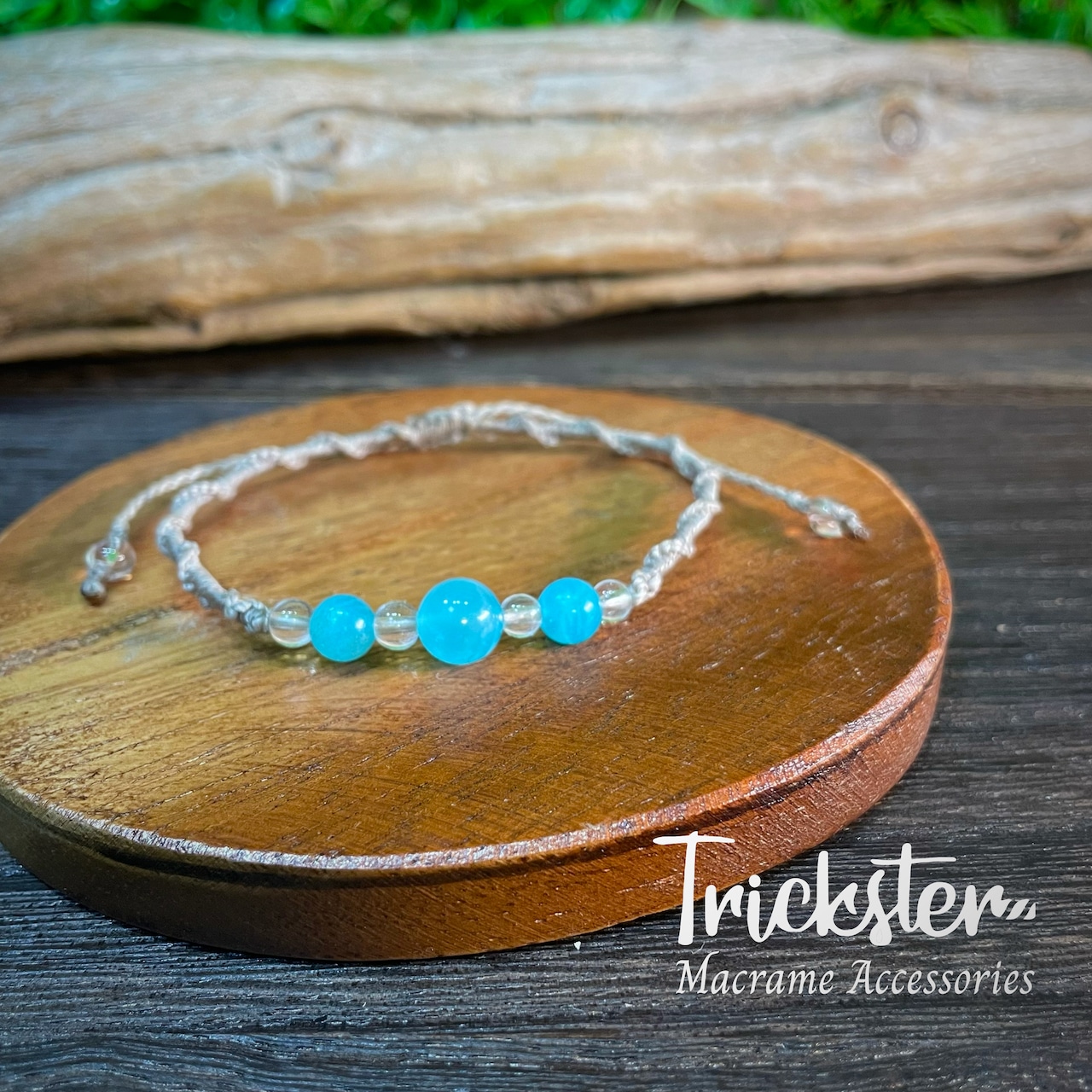 アマゾナイトシリカとクォーツを使用したマクラメブレスレットです。